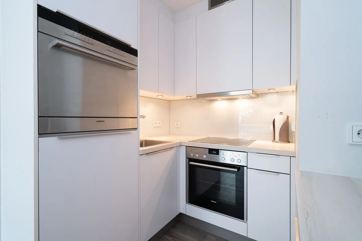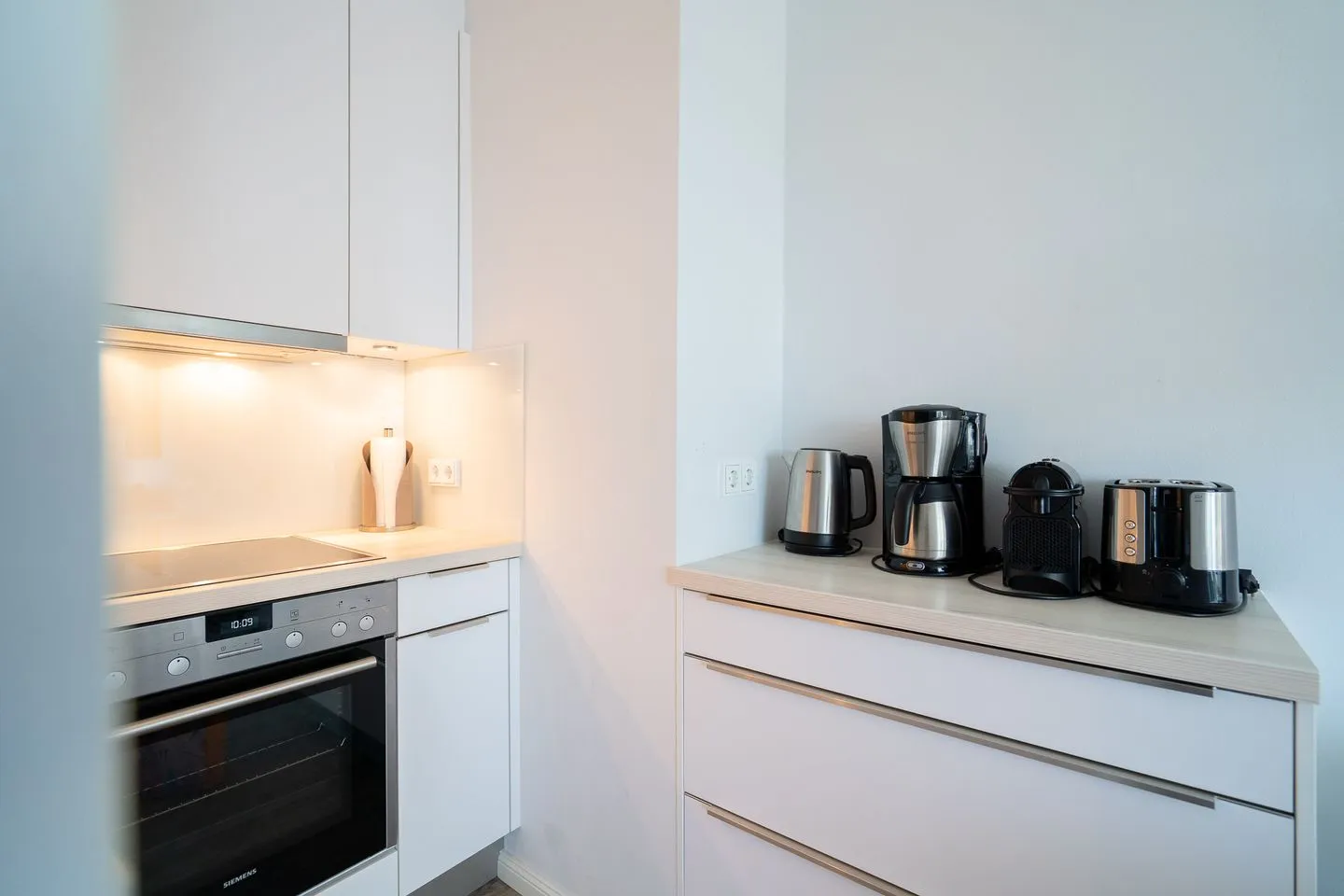 In der Wohnung erwartet Sie ein modern gestalteter Wohnbereich mit einer offenen Küche, die mit hochwertigen Küchengeräten, wie einem Cerankochfeld, Backofen, Kühlschrank samt Gefrierfach sowie einer Spülmaschine ausgestattet ist. Hier finden Sie alles, was Sie benötigen, um köstliche Mahlzeiten zuzubereiten. Das gemütliche Sofa und der Essbereich laden dazu ein, entspannte Abende im Freundes- oder Familienkreis zu verbringen. Für gesellige Filmabende steht Ihnen ein großer Fernseher zur Verfügung, zudem gibt es WLAN und Radio, damit Sie auch während Ihres Aufenthaltes bestens unterhalten werden.