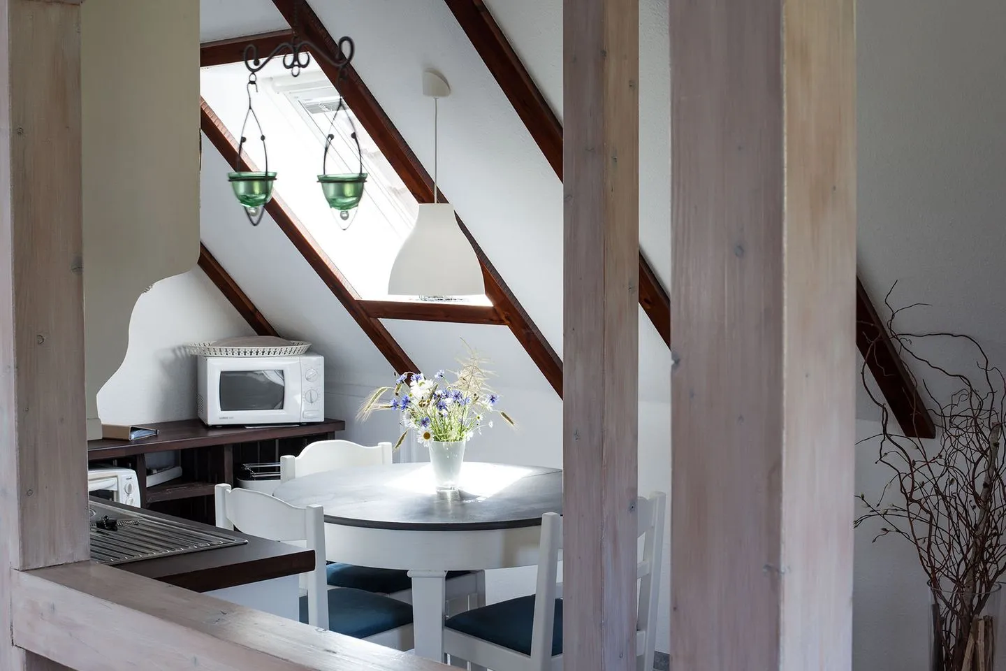 Verbringen Sie hier eine ruhige Auszeit in charmantem Ambiente und genießen Sie das besondere Flair dieser liebevoll eingerichteten Dachgeschosswohnung.
