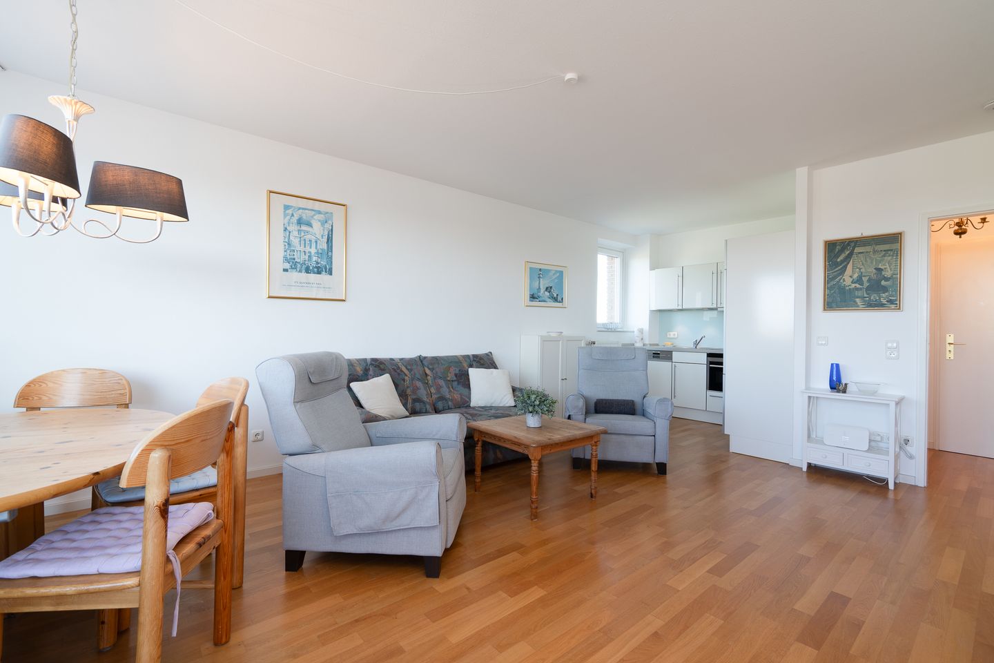 Beau Rivage in Scharbeutz bietet Ihnen auf 48 m² ein komfortable Unterkunft für Ihren Aufenthalt an der Ostsee. Aufgeteilt auf zwei Zimmer bietet das Apartment Platz für bis zu vier Personen und befindet sich im 4. Obergeschoss mit Aufzug eines gepflegten Hauses in direkter Nähe zum Sandstrand – nur 200 Meter trennen Sie von der Ostsee, sodass Sie das maritime Flair jederzeit genießen können.