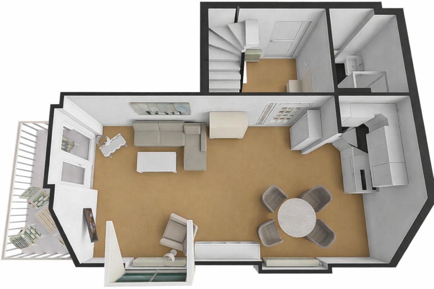 Diese schöne Ferienwohnung über zwei Ebenen besticht durch die geschmackvolle Einrichtung. Das moderne und lichtdurchflutete Wohnzimmer lädt mit einer gemütlichen Sofaecke sowie einem 42-Zoll Fernseher zu entspannten Abenden ein. Die bequeme Schlafcouch mit Lattenrost (Liegefläche 140 x 200 cm) bietet einen Schlafplatz für bis zu zwei Personen. Die offene Küche grenzt direkt an den Wohnbereich an und ist mit Annehmlichkeiten wie Ceranherd, Backofen und Spülmaschine gut ausgestattet. Vom Wohnbereich erreichen Sie direkt den angrenzenden Balkon, ausgestattet mit Sonnenschirm und Gartenmöbeln können Sie hier die Tage entspannt beginnen oder ausklingen lassen.
