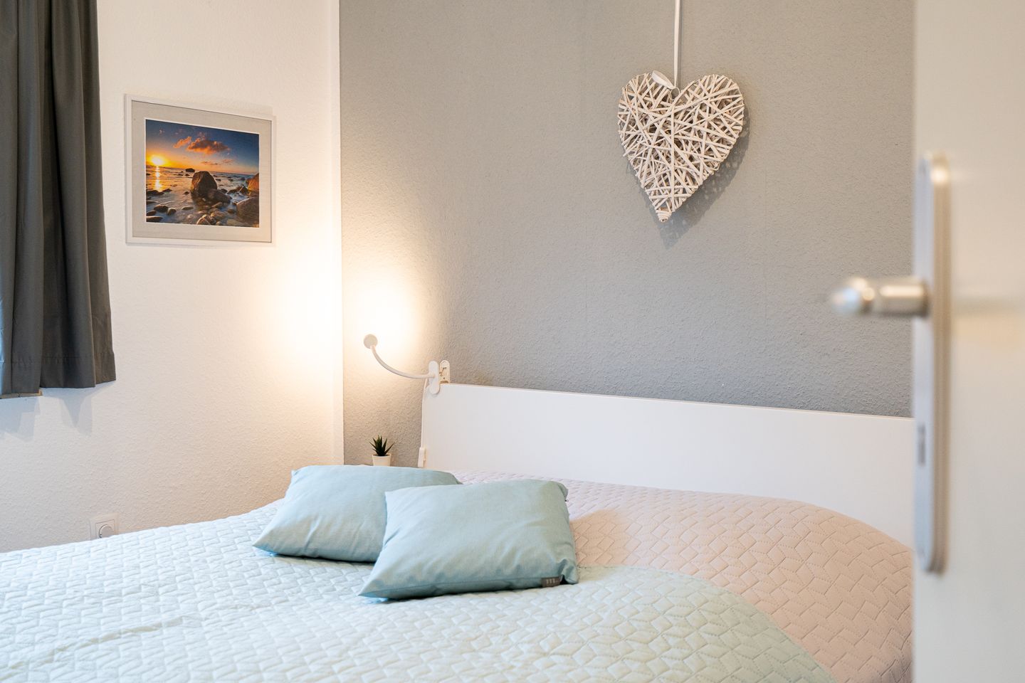 Die Ferienwohnung verfügt über zwei Zimmer und bietet damit komfortabel Platz für Paare, kleine Familien oder Alleinreisende. Das separate Schlafzimmer ist mit einem Doppelbett (160 x 200 cm, Matratzenhärtegrad 3) ausgestattet und sorgt für erholsame Nächte. Im Wohnzimmer steht zusätzlich ein Schlafsofa mit einer Liegefläche von 150 x 195 cm zur Verfügung. Der Wohnbereich mit gemütlicher Sofaecke und Essplatz bildet das Herzstück der Ferienunterkunft und lädt zum Entspannen und Verweilen ein. Die offene Raumgestaltung sorgt für eine helle, freundliche Atmosphäre. Kinder und Babys sind herzlich willkommen; ein Kinderhochstuhl steht zur Verfügung.
