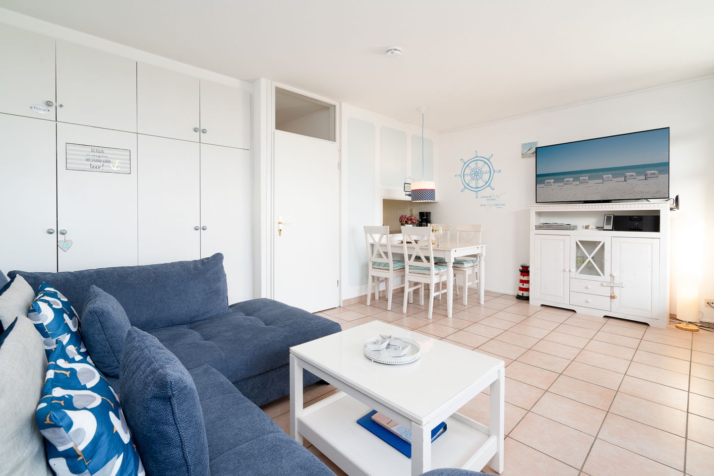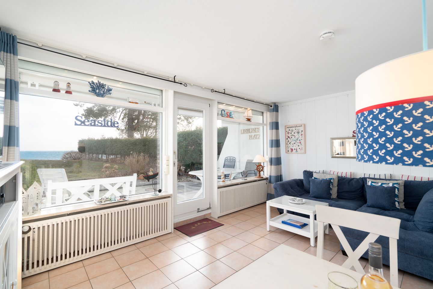 Die Wohnung befindet sich ebenerdig in vorderster Reihe. Zum Strand sind es nur ein paar Meter.