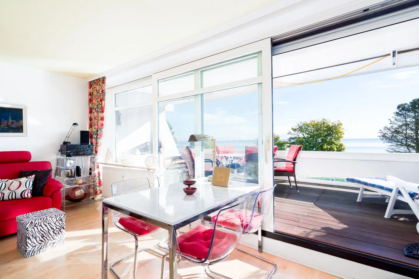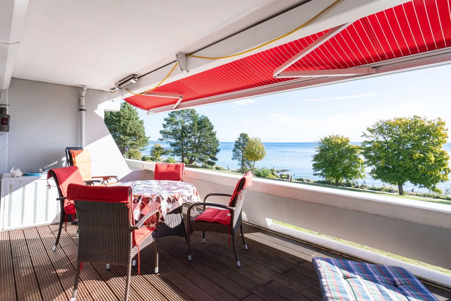 die Wohnung befindet sich in der 1. Etage (Eingang Parterre) in der 1. Reihe der Terrassenhäuser mit großem Balkon und herrlichen Ostseeblick. Die Wohnung bietet einen Erholungsort in einem wunderbaren Wohlfühlambiente für maximal 2 Personen. Vom kombinierten Wohn- und Essbereich haben Sie Zugang zum großen Balkon mit Markise in Süd-Ost-Lage. Dieser bietet 100% Meerblick und Wellenrauschen. Die vom Wohn- und Essbereich abgetrennte Küche ist mit Spülmaschine, Backofen und Herd gut ausgestattet. Im Schlafraum stehen zwei Einzelbetten (jeweils 90 cm x 200 cm), die nicht zusammenzuschieben sind. Das weiß geflieste Duschbad ist innenliegend. Ohne eine Straße überqueren zu müssen, sind es nur wenige Gehminuten zum schönen Sandstrand. PKW-Stellplatz im Parkdeck vor dem Haus inklusive.