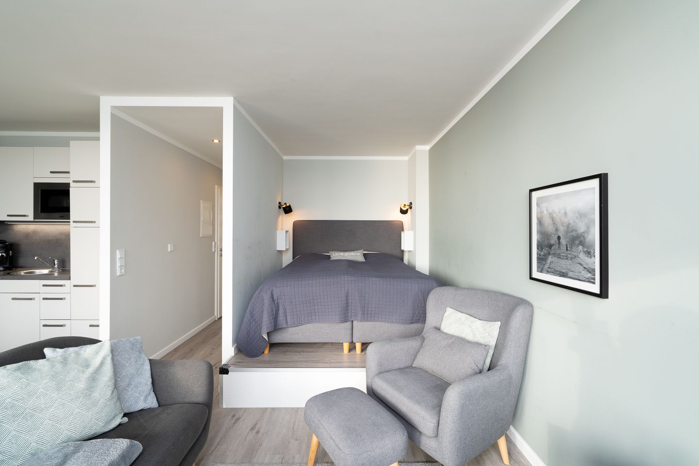 Beste Lage, super Blick auch direkt aus dem Bettchen. Extrem kurzer Weg vom Parkplatz zu dieser Wohnung. Tolle Ausstattung