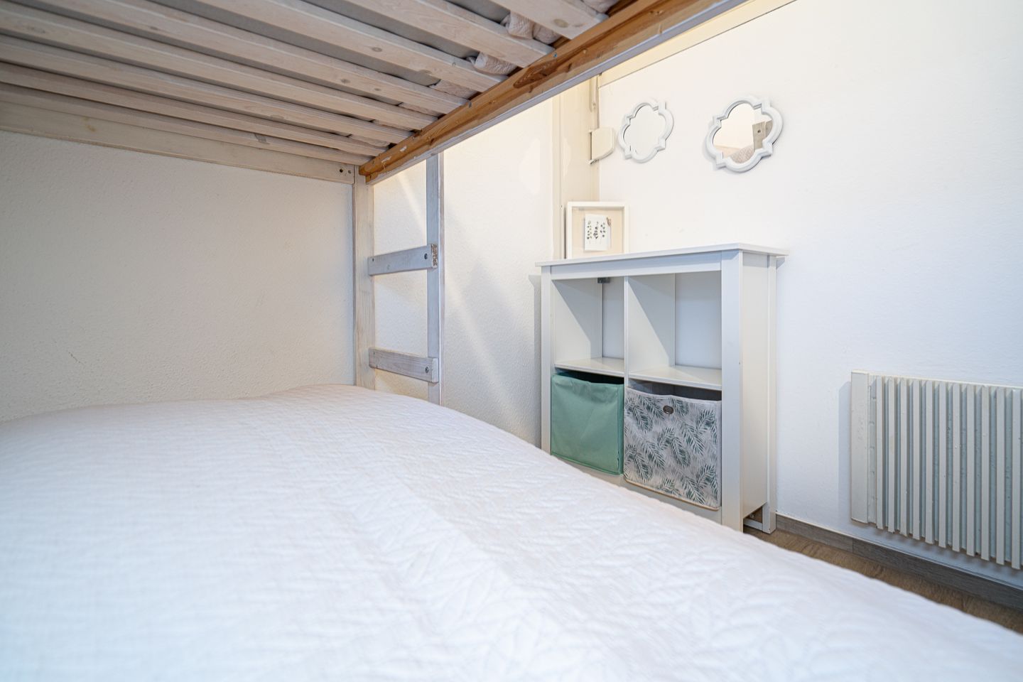 Die Unterkunft bietet zwei separate Schlafzimmer: Schlafzimmer 1 ist mit einem kleinen Doppelbett (2 x 80 x 200cm) ausgestattet. Schlafzimmer 2 verfügt über ein Etagenbett für zwei Personen (je 90 x 200cm) und eignet sich besonders gut für Kinder oder Jugendliche. Verdunklungsmöglichkeiten in beiden Schlafräumen sorgen für angenehmen Schlafkomfort.