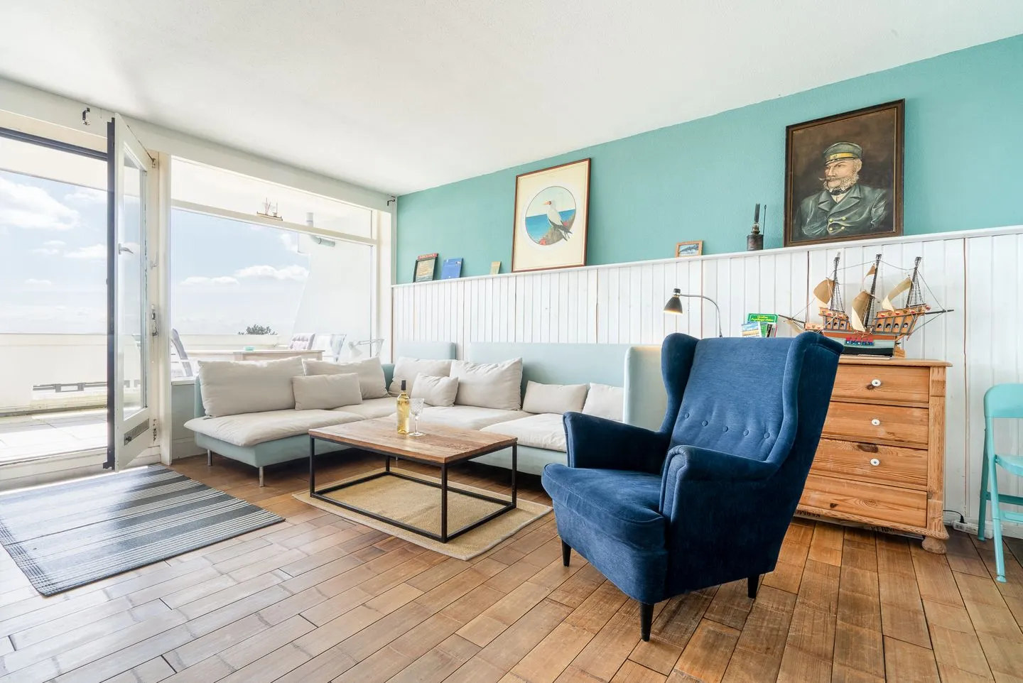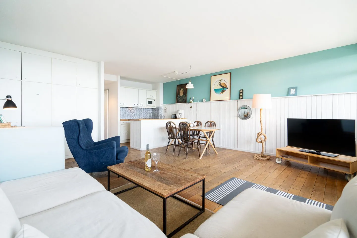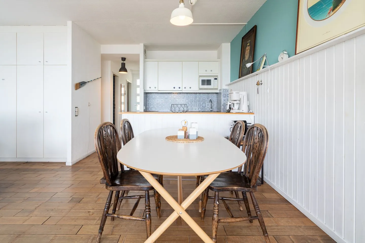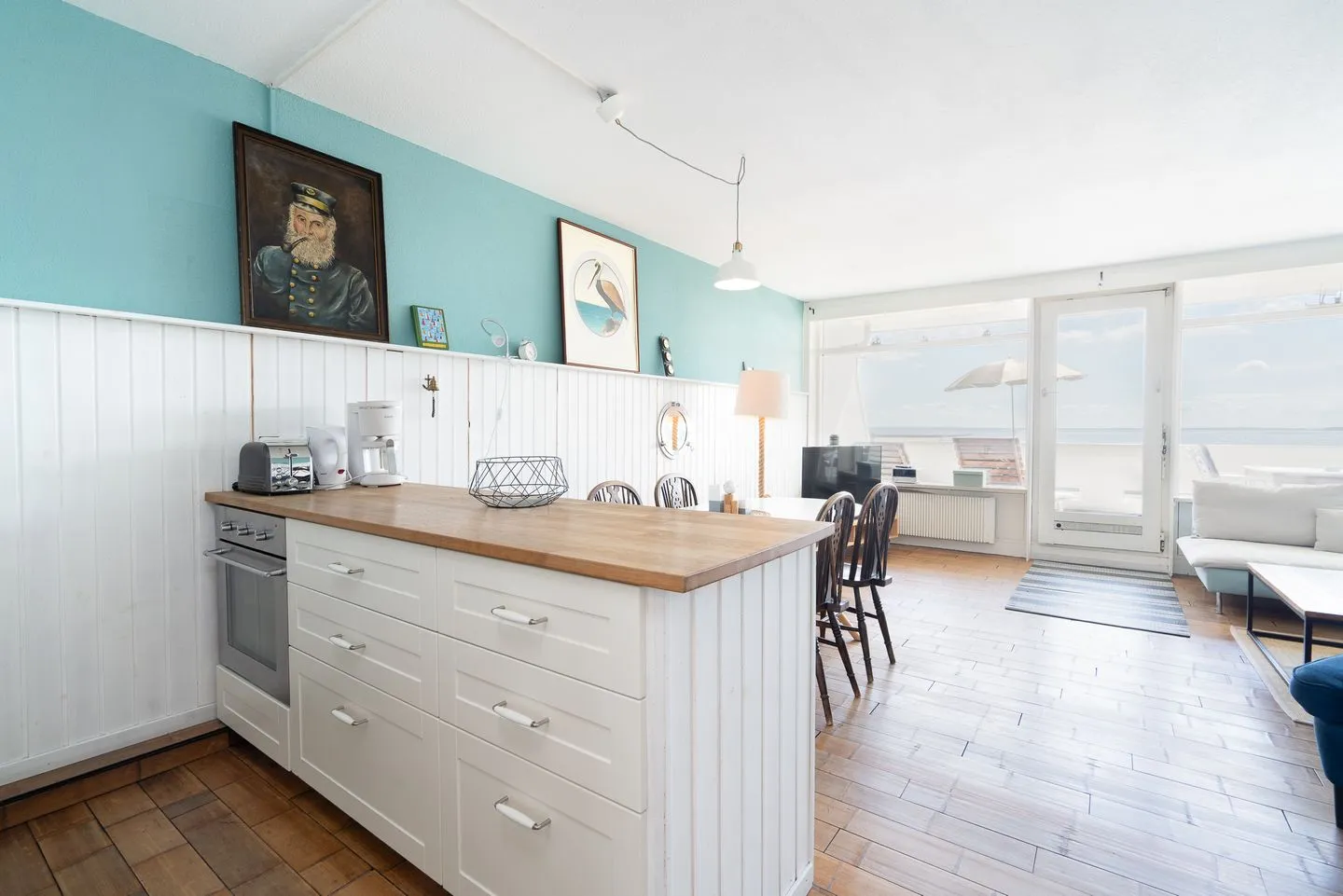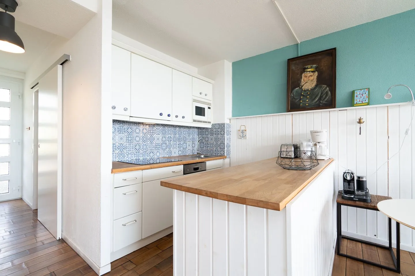 Diese helle und schöne 3-Raum-Ferienwohnung ist ein wunderbares Feriendomizil für die ganze Familie. Vom Balkon aus haben Sie einen schönen Blick auf die Ostsee über die erste Reihe der Flachbauten hinweg. Der gemütliche Wohn- und Essbereich mit Esstisch und Sofaecke strahlt mit seiner stimmigen Einrichtung mit maritimen Elementen und dem hochwertigen Parkettboden Behaglichkeit und Wohlfühlatmosphäre aus. Die moderne Küche ist mit Spülmaschine, Herd und Mikrowelle ausgestattet und zum Wohn- und Essbereich offen. Im ersten Schlafzimmer steht ein komfortables Doppelbett (2x 80 x 200 cm), im zweiten ein Etagenbett (jeweils 90 x 185 cm). Das Duschbad ist innenliegend. Ohne eine Straße zu überqueren sind es zum Strand nur wenige Fußschritte. PKW-Stellplatz inklusive.