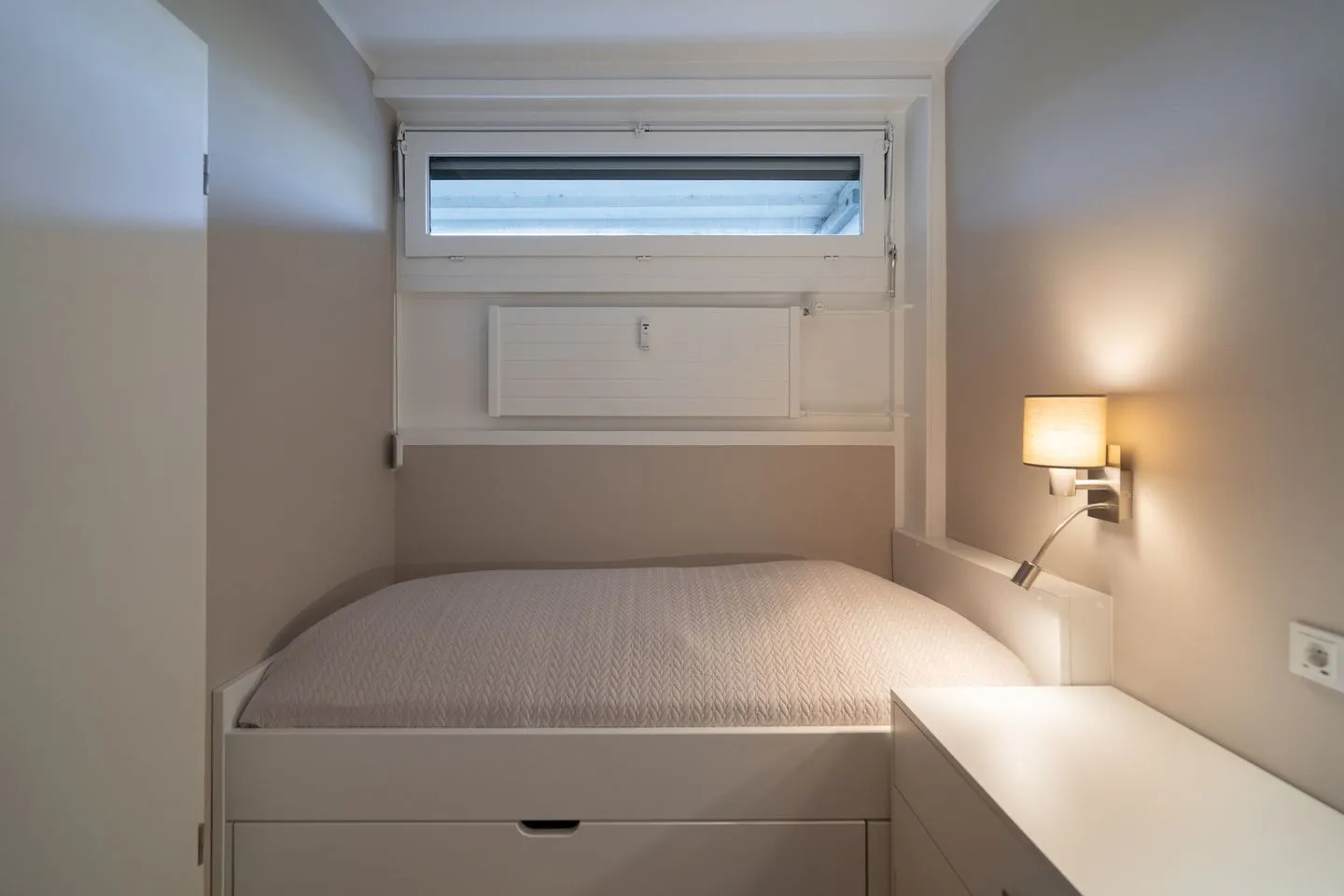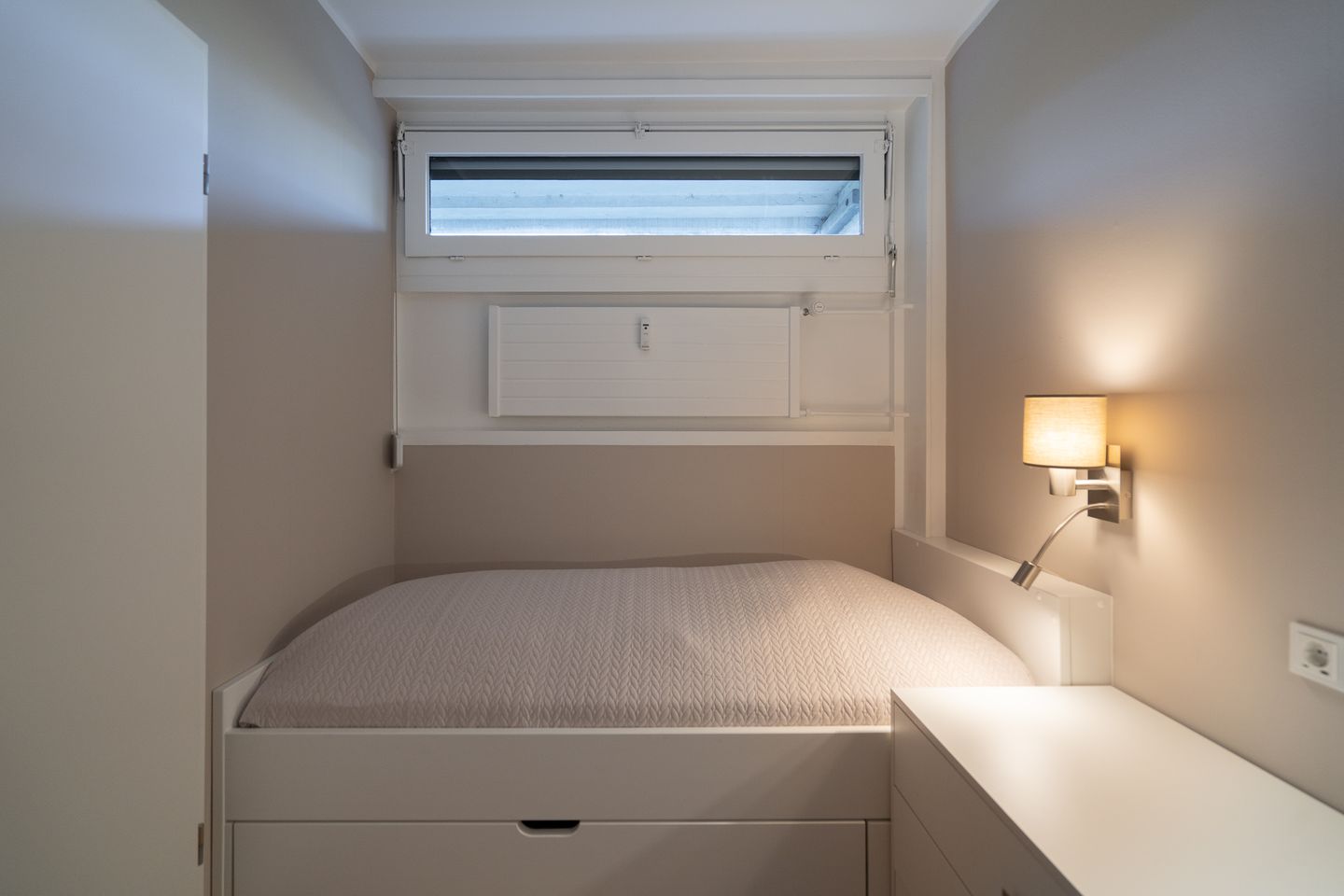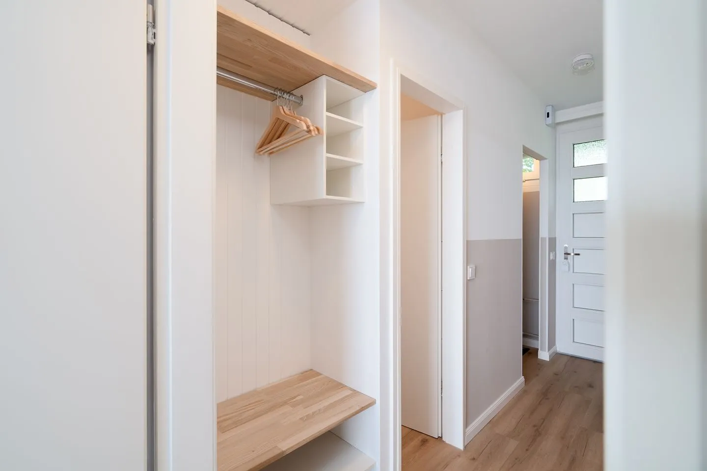 Das Apartment liegt im zweiten Stock einer gepflegten Ferienanlage und umfasst eine Wohnfläche von 50 m², aufgeteilt auf insgesamt drei Zimmer. Im ersten Schlafzimmer stehen zwei Einzelbetten (2x 90 cm x 190 cm), die nicht zusammengestellt werden können. Im zweiten Schlafraum steht ein Etagenbett (2x 90 cm x 180 cm). In den Schlafräumen befindet sich jeweils ein kleines Fenster zum Öffnen. Das neue Duschbad ist innenliegend.