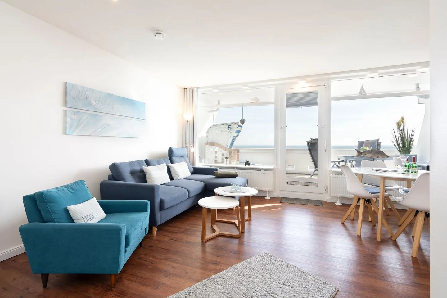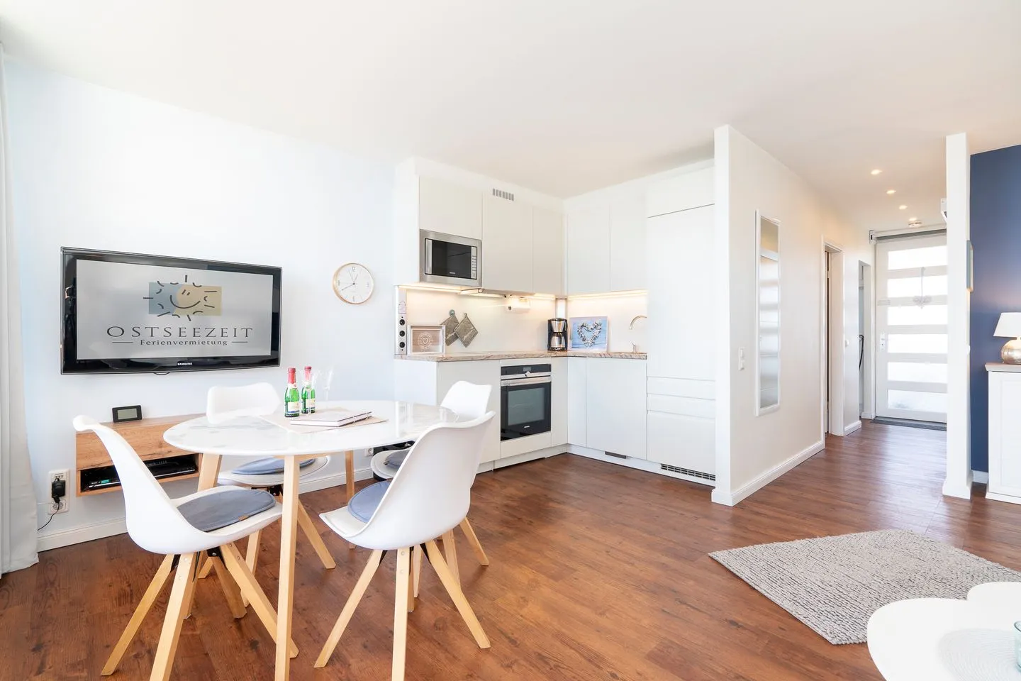 Diese helle und schöne 2-Raum-Ferienwohnung ist das ideale Feriendomizil für Familien. Vom großen Balkon mit Strandkorb können Sie einen wunderbaren Blick auf die Ostsee über die erste Reihe der Flachbauten hinweg genießen. Eine elektrische Markise sorgt bequem für Sonnenschutz.