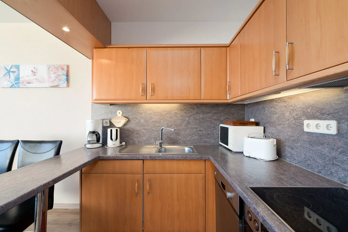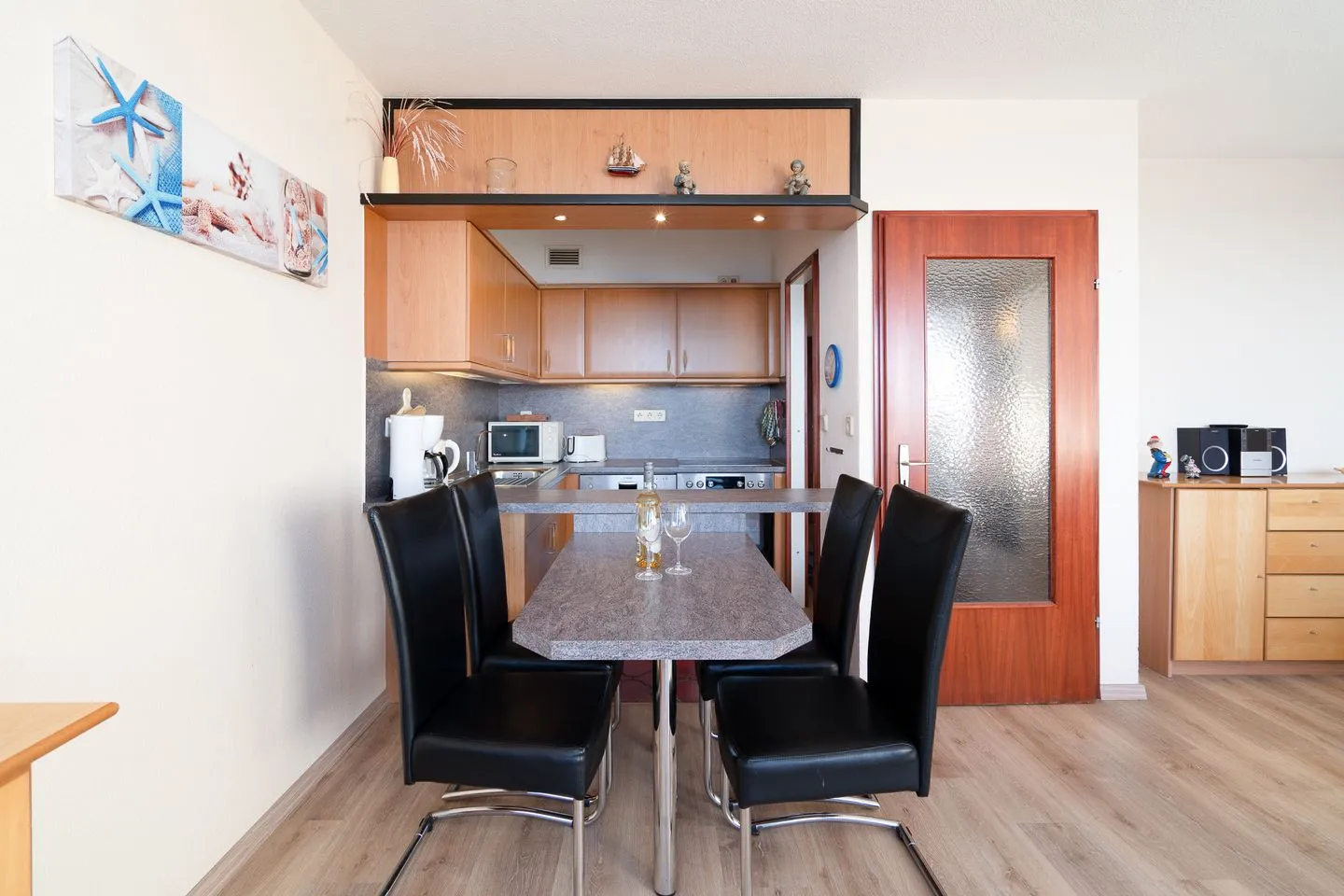 Willkommen im Schiffkieker 295! Die geräumige 2-Raum-Ferienwohnung liegt in der 3. Etage mit Ostseeblick und ist für bis zu 4 Personen geeignet.