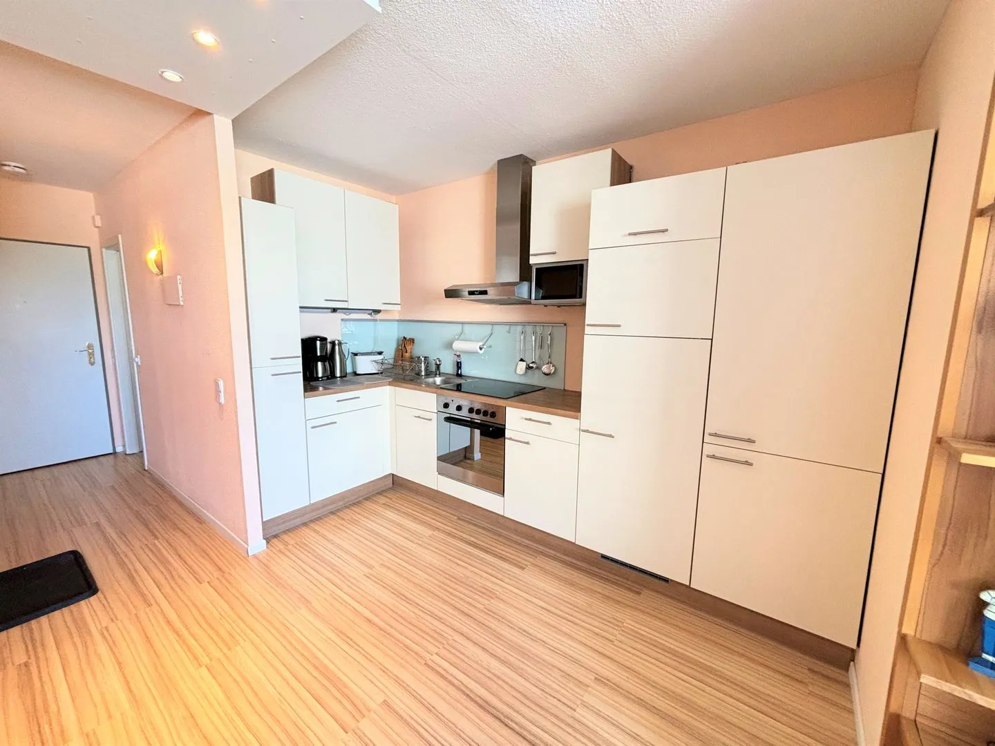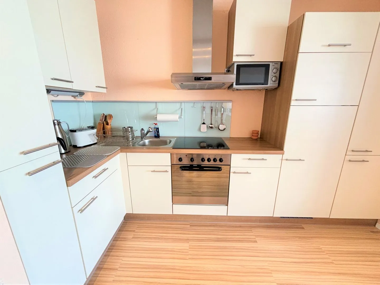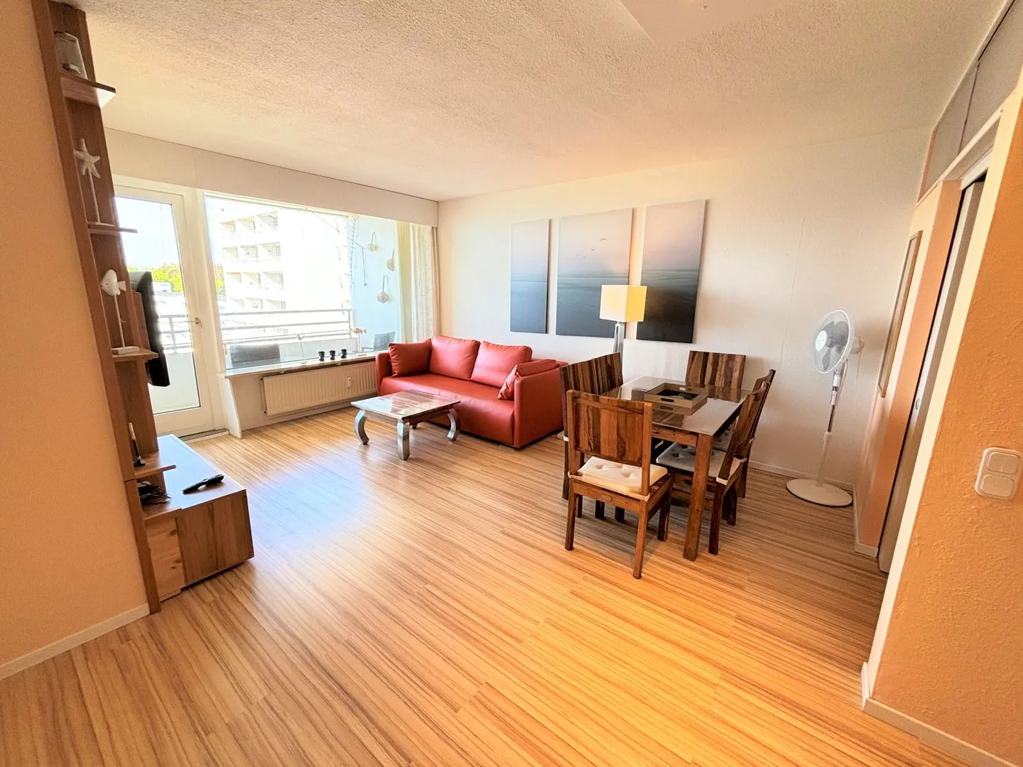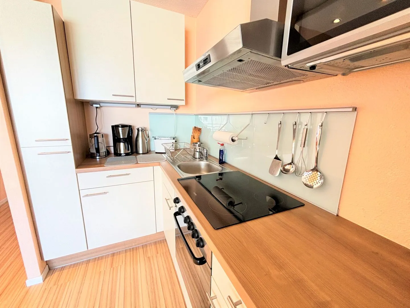 Diese schöne 2-Raum-Wohnung liegt im 4. Stock und hat vom Balkon aus einen tollen Blick auf die Ostsee. Die mit Backofen und Herd ausgestattete Küche ist in den kombinierten Wohn- und Essbereich integriert. Von hier aus gelangen Sie auch auf den Balkon in Süd-West-Lage. Vom Wohnraum durch ein Schiebeelement abgetrennt, befindet sich eine Schlafkammer mit einem breiten Einzelbett (120 cm x 200 cm) und einem Fenster zum Balkon hin. Aufwachen und die Ostsee sehen - so kann der Tag beginnen! Im zweiten Schlafraum steht ein Doppelbett (140 cm x 200 cm). Das moderne Duschbad ist innenliegend. Zum Strand sind es nur wenige Fußschritte. Der PKW-Stellplatz im Parkdeck ist nur über eine Treppe erreichbar, ein Seiteneingang führt zum Fahrstuhl zum ebenerdigen Be-und Entladen.