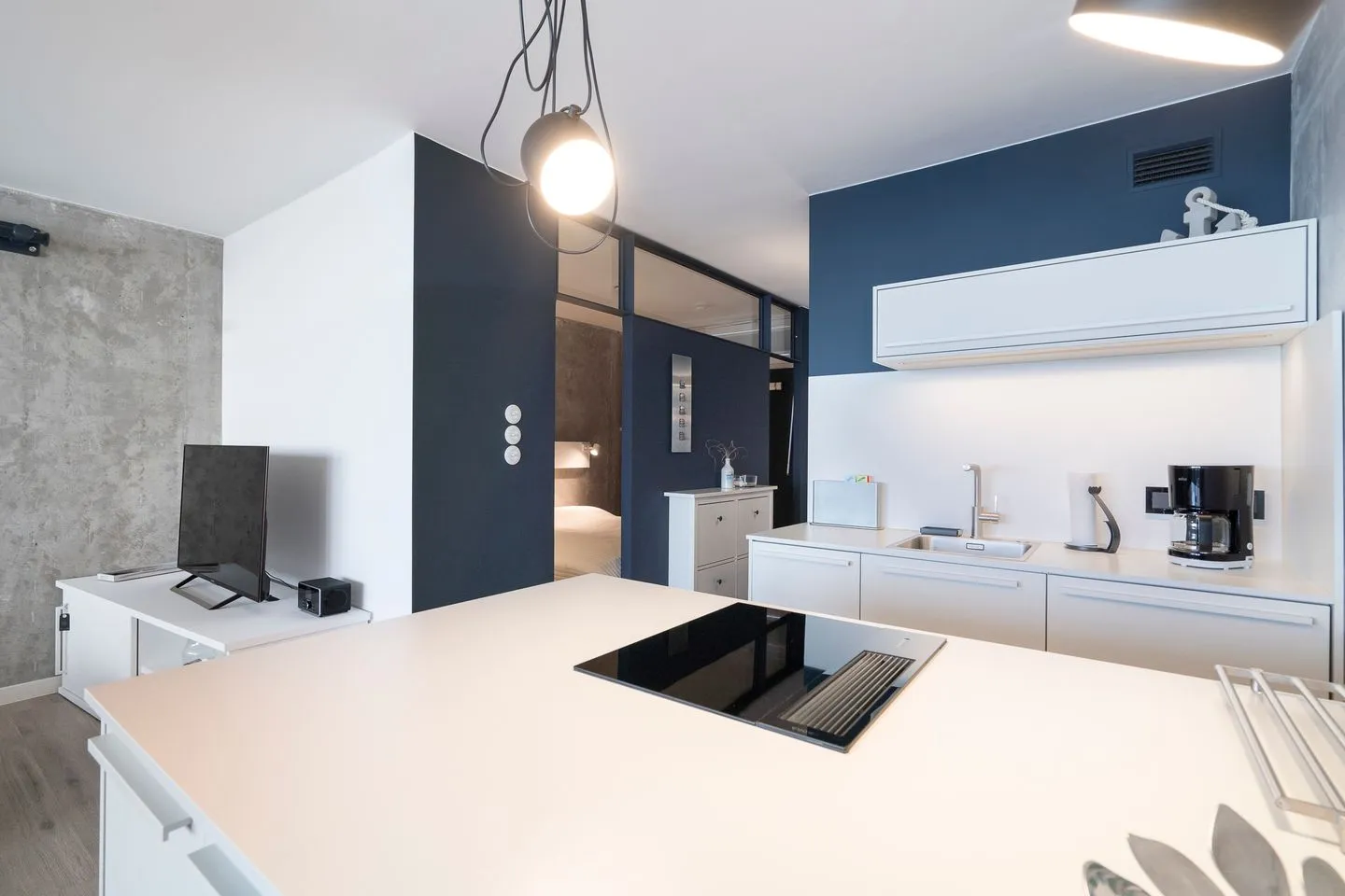 Diese schöne und besondere Wohnung lädt ein zu einem entspannten Urlaub zu zweit. Vom Balkon aus können Sie vom 8. Stock aus den herrlichen Blick auf die Ostsee genießen und die Seele baumeln lassen. Der gemütliche, kombinierte Wohn- und Essbereich verfügt über eine offene Küche, die mit Spülmaschine, Backofen und Herd ausgestattet ist. Im Schlafraum steht ein bequemes Doppelbett, in das durch Aussparungen in der Wand von beiden Seiten eingestiegen werden kann. Das moderne Bad hat eine Dusche. Zum Strand sind es nur wenige Fußschritte. PKW-Stellplatz inklusive.