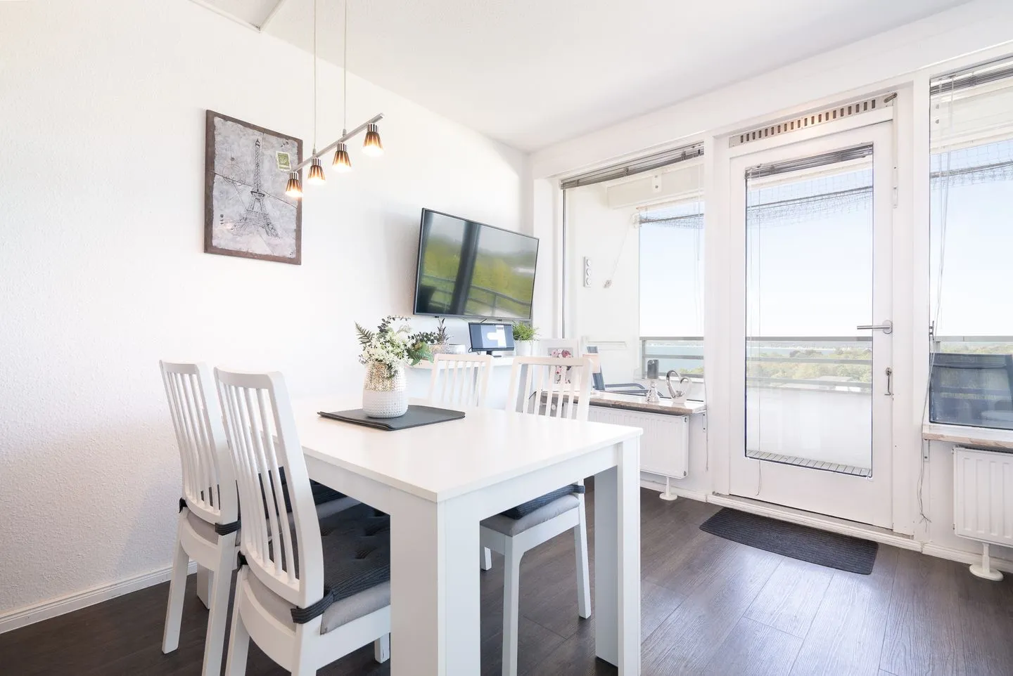 diese attraktive Wohnung befindet sich in der 10. Etage mit Balkon in Süd-West-Lage und schönem Ostseeblick und ist prima geignet für Ihren erholsamen Familienurlaub. Vom kombinierten Wohn- und Essbereich haben Sie Zugang zum Balkon. Die Küche ist hier integriert und mit Geschirrspüler, Herd und Backofen gut ausgestattet. Im ersten Schlafraum befindet sich ein Doppelbett (2x 90 cm x 200 cm) und im zweiten ebenfalls ein Doppebett (2x 80 cm x 200 cm). Im Wohnbereich befindet sich zudem eine Schlafcouch (160 cm x 200 cm). Das moderne Duschbad ist innenliegend. Zum Strand sind es nur wenige Fußschritte. PKW-Stellplatz inklusive.