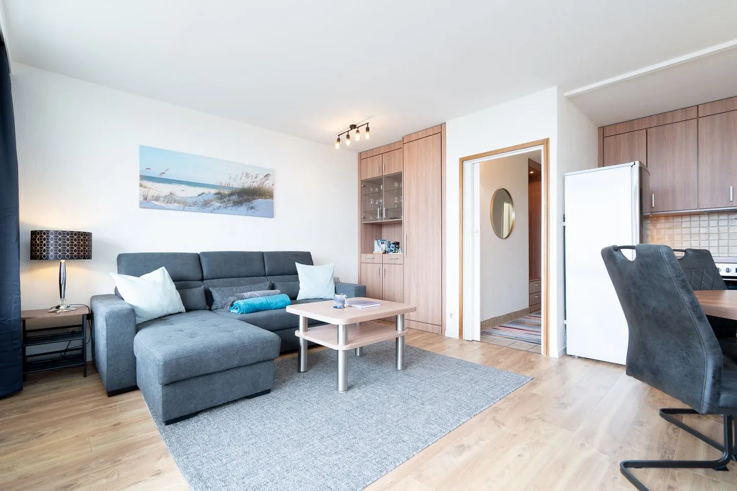 Diese schöne 2-Raum-Ferienwohnung liegt im 1. Stock eines Hochhauses mit Balkon. Vom kombinierten Wohn- und Essbereich haben Sie Zugang zum Balkon, von hier haben Sie über andere Häuser hinweg Blick auf die Ostsee. Die Küche ist mit Backofen und Herd ausgestattet und ist in den Wohn- und Essbereich integriert. Im Schlafraum steht ein komfortables Doppelbett mit getrennten Matratzen (2x 90 x 200 cm). Im Wohnbereich bietet das gemütliche Schlafsofa (140 x 200 cm) Platz für eine weitere Person. Das moderne Bad hat eine bodentiefe Dusche und ist innenliegend. Zum Strand sind es nur wenige Fußschritte. PKW-Stellplatz inklusive.