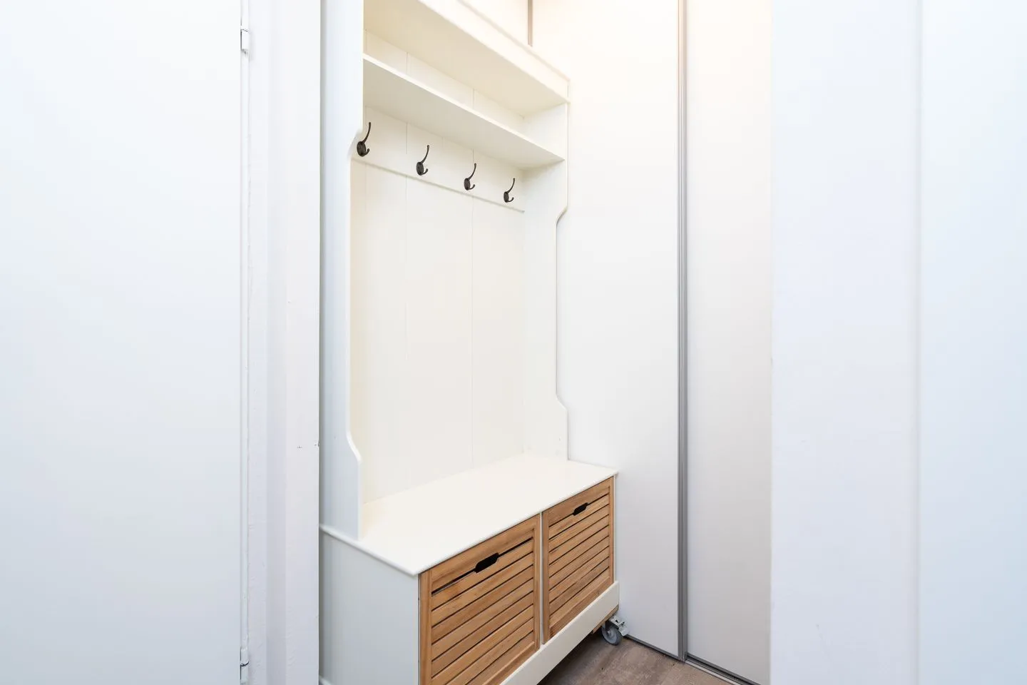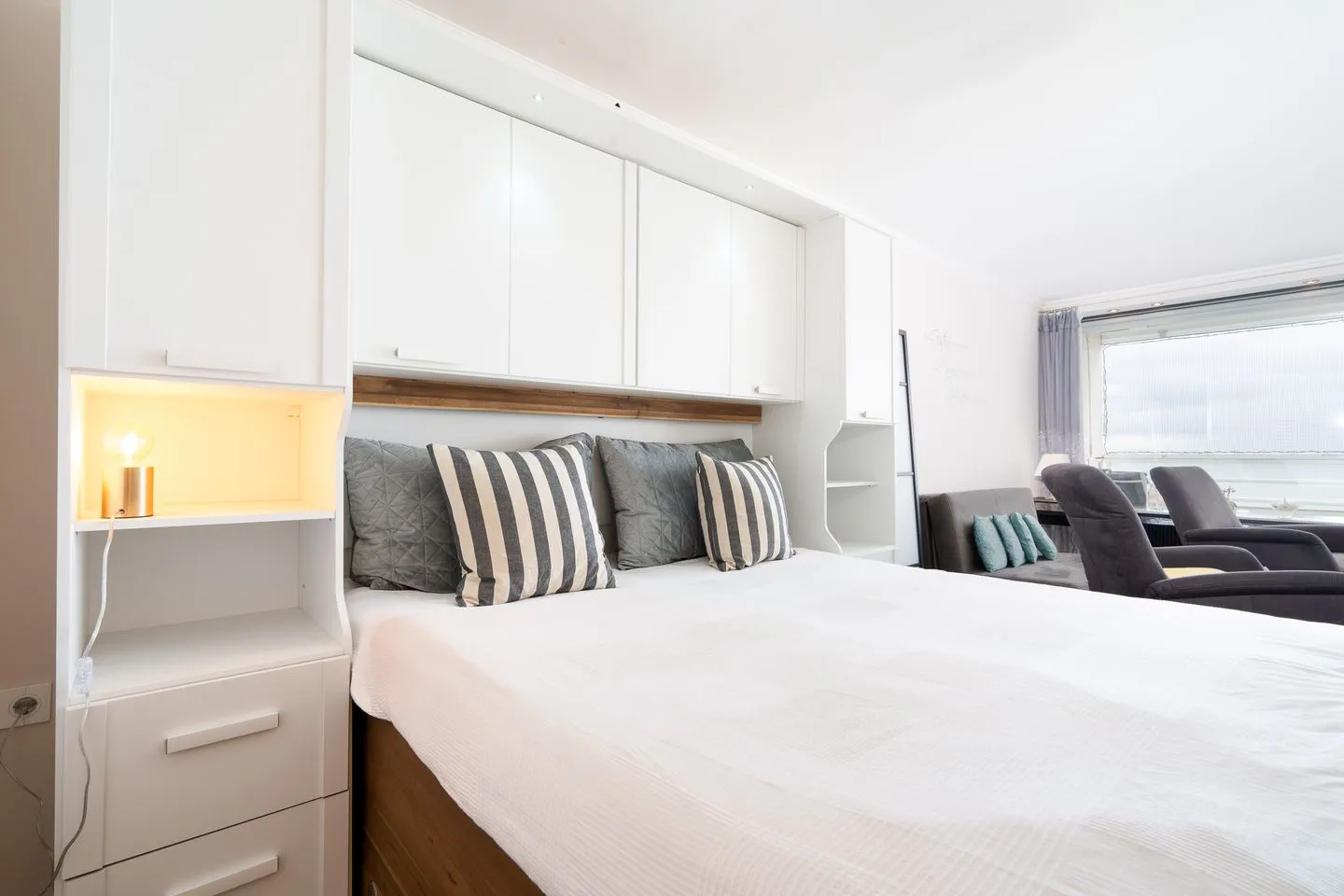 Diese schöne und helle Ferienwohnung ist ein wunderbares Feriendomizil für zwei Personen. Der Balkon bietet über andere Häuser hinweg Blick auf die Ostsee. Das bequeme Doppelbett (2x 90 cm x 200 cm) ist in den Wohn- und Essbereich integriert und ist von beiden Seiten zugänglich. Mit einem Raumteiler kann das Bett optisch vom Wohnbereich getrennt werden. Die offene und moderne Küche ist mit einer Spülmaschine und einem Mikrowellen-Backofen-Kombigerät voll ausgestattet. Die dort zubereiteten Mahlzeiten können Sie ganz bequem am Esstisch einnehmen und den Abend im Anschluss auf den komfortablen Sesseln ausklingen lassen. Das Duschbad ist innenliegend. Ohne eine Straße überqueren zu müssen, sind es zum flach abfallenden Sandstrand nur wenige Fußschritte. PKW-Stellplatz inklusive.