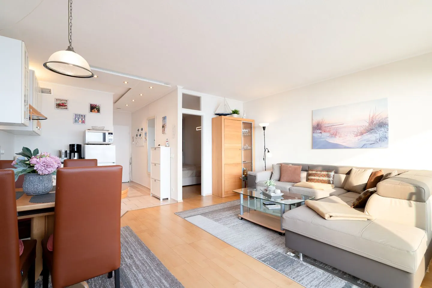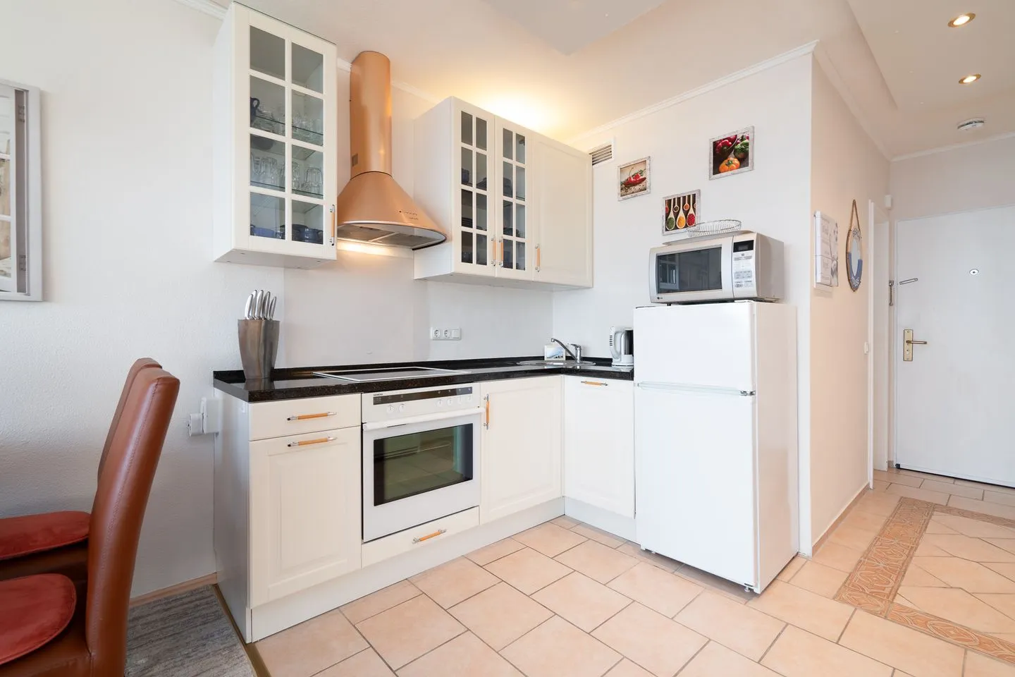 Die 2-Raum-Ferienwohnung Nr. 537 liegt in der 6. Etage und hat einen wunderschönen uneingeschränkten Panoramablick auf die Ostseeküste von Scharbeutz bis Travemünde. Vom kombinierten Wohn- und Essbereich haben Sie Zugang zum möblierten Balkon. In der in den Wohn-/Essbereich integrierten Küche mit Geschirrspüler, Cerankochfeld, Backofen, Mikrowelle und Kleingeräten bleibt kein Wunsch offen. Ein großer Flachbildschirm + DVD-Player sowie eine Musikanlage sorgen für Ihre Unterhaltung, ebenso wie Lektüre und Spiele.