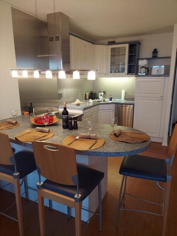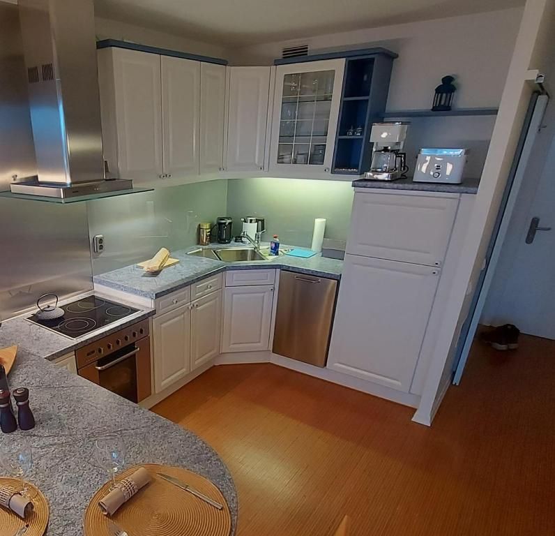 Mit einer Wohnfläche von 42 m² präsentiert sich das Appartement offen und einladend. Es verfügt über zwei Zimmer, darunter ein separates Schlafzimmer sowie einen modern gestalteten Wohnbereich mit offener Küche. Das Schlafzimmer bietet ausreichend Schlafkomfort, ergänzt durch weitere Schlafmöglichkeiten im Wohnbereich, sodass insgesamt Platz für bis zu vier Personen geboten wird. Genießen Sie gesellige Stunden in der gemütlichen Sofaecke oder lassen Sie Ihre Tage am großzügigen Esstisch ausklingen. Die bestens ausgestattete Küche ist offen in das Wohnzimmer integriert und verfügt über alles was man zur Selbstverpflegung benötigt.