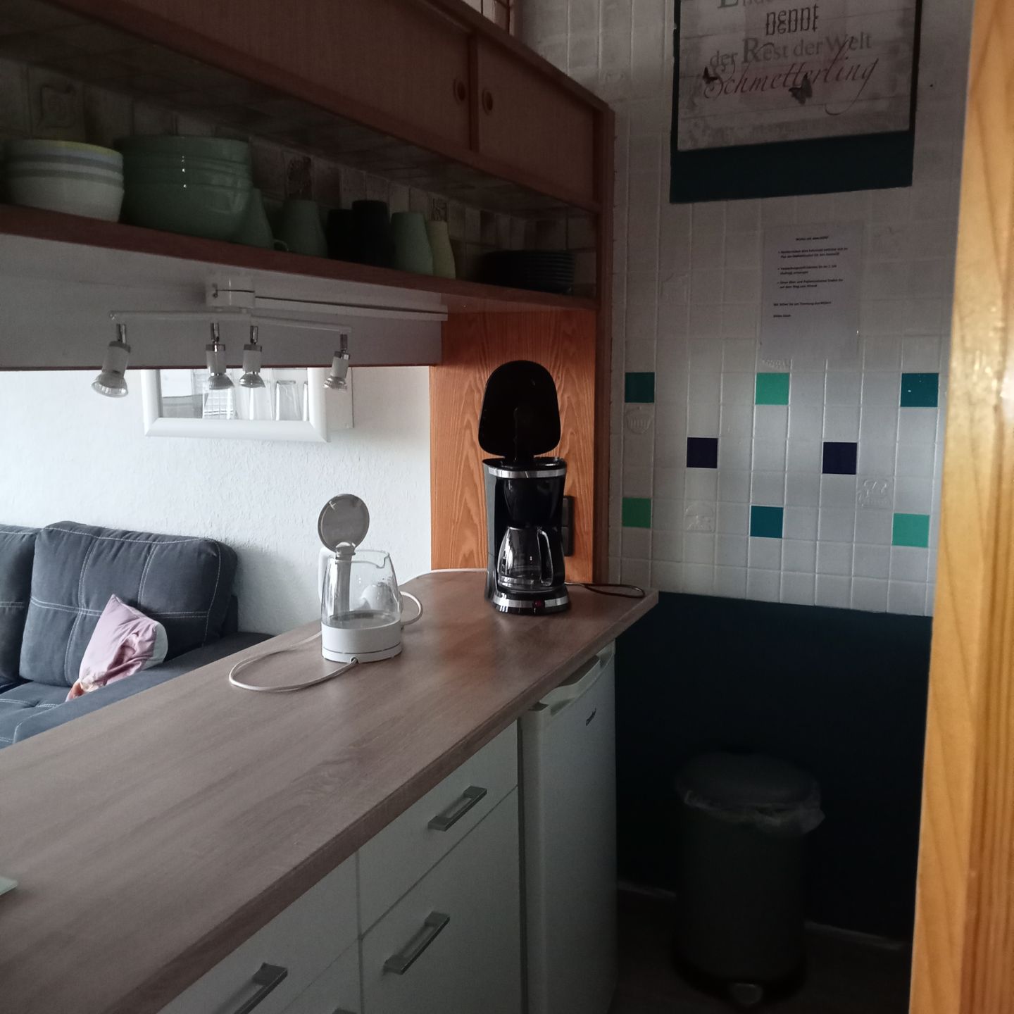 Der Wohnbereich ist mit Sofaecke, Essbereich und TV ausgestattet und geht offen in die Küche über. In der Küche stehen Ihnen Ceran-Herd, Backofen, Mikrowelle, Kühlschrank mit Gefrierfach, Kaffeemaschine und weitere Annehmlichkeiten zur Verfügung – passend für die flexible Selbstverpflegung. WLAN ist vorhanden.