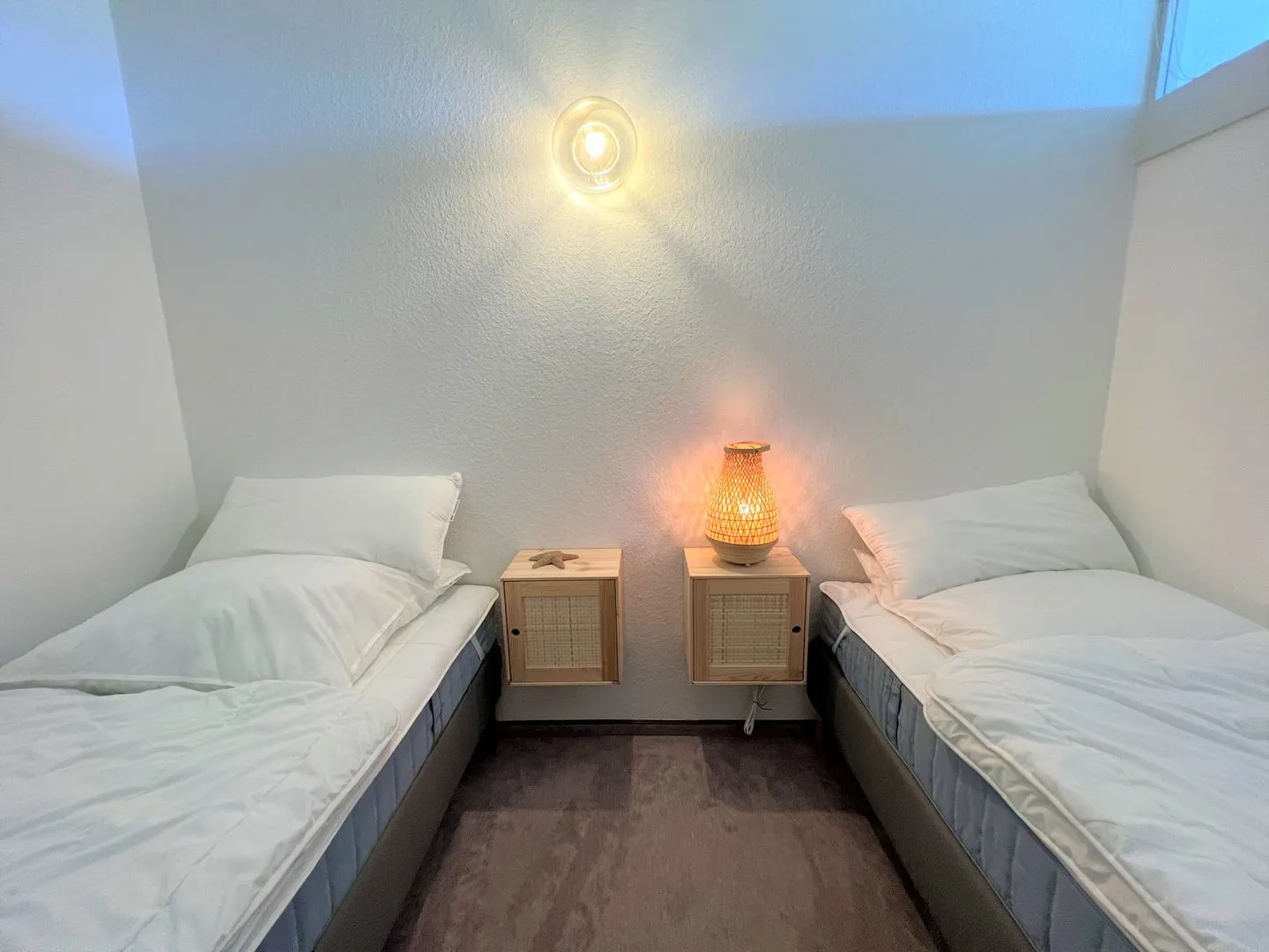 Diese gemütliche 2-Raum-Ferienwohnung mit Balkon liegt in der 3. Etage. Vom Balkon aus haben Sie einen schönen Fernblick auf die Lübecker Bucht. Die funktionale Küche mit Backofen und Herd ist mit einer Durchreiche zum kombinierten Wohn- und Essbereich hin offen. Im Schlafraum stehen zwei komfortable Einzelbetten (90 x 190 cm), die man nicht zusammenstellen kann. Zudem steht im Wohnraum ein Schlafsofa (155 x 200 cm). Das Duschbad ist innenliegend. Zum Strand sind es nur wenige Fußschritte. PKW-Stellplatz inklusive.