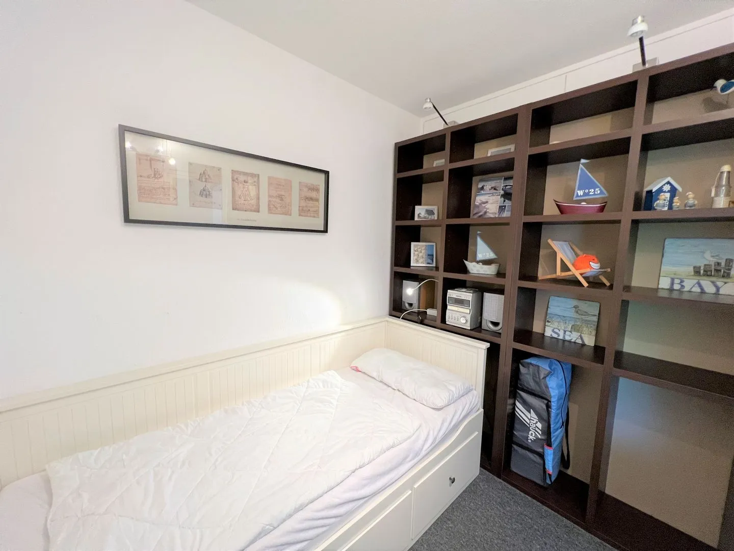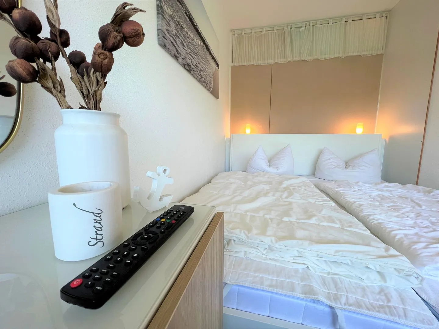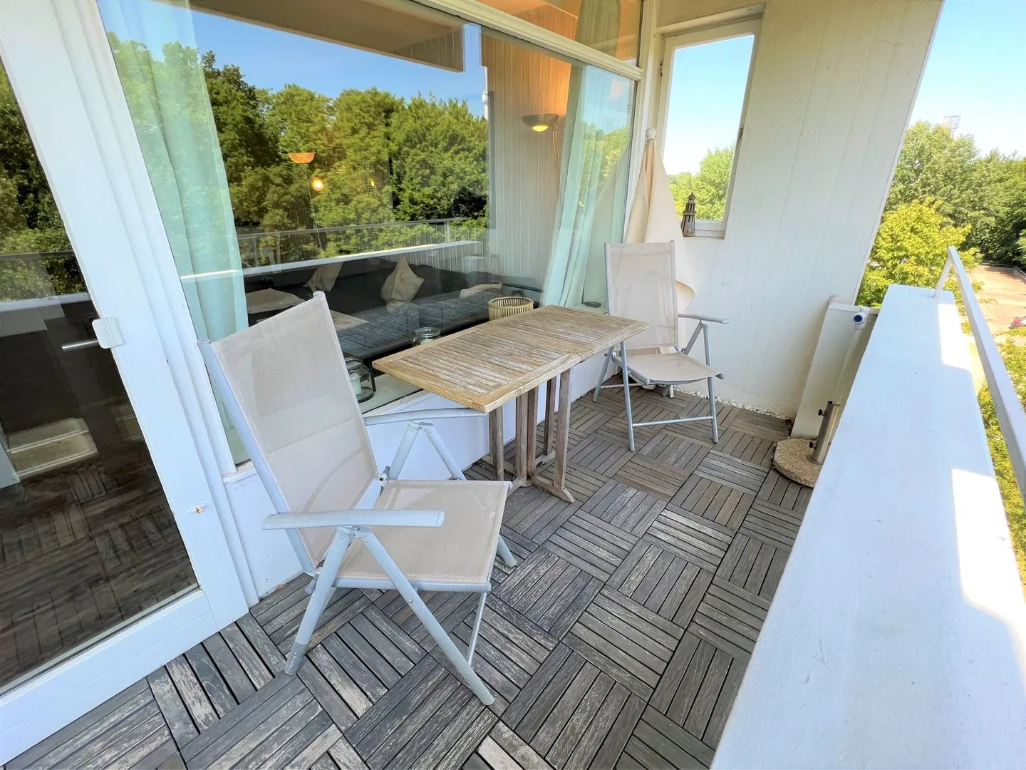 hier finden Sie eine maritime, hell und freundlich eingerichtete 50 qm 3-Raum-Ferienwohnung in der Apartmentanlage Panoramic. Es gibt einen Wohnraum mit Essbereich und einem Balkon in Ostlage mit Blick ins Grüne. In der Wohnung sind 2 innenliegende Schlafräume - das erste Schlafzimmer mit Doppelbett (je 90 x 200 cm), das zweite mit einem 80 x 200 cm Bett, welches man zu einer größeren Liegefläche ausklappen kann (je 80 x 200 cm). Ist das Bett nicht ausgezogen, hat ein Kinderbett ausreichend Platz.. Der zweite Schlafraum hat ein Oberlicht zum anderen Schlafraum. Die Küche ist zum Essbereich offen und ist mit Spülmaschine, Backofen und Herd ausgestattet. Das moderne und helle Wannenbad ist innenliegend. Zum Strand sind es nur wenige Minuten zu Fuß.