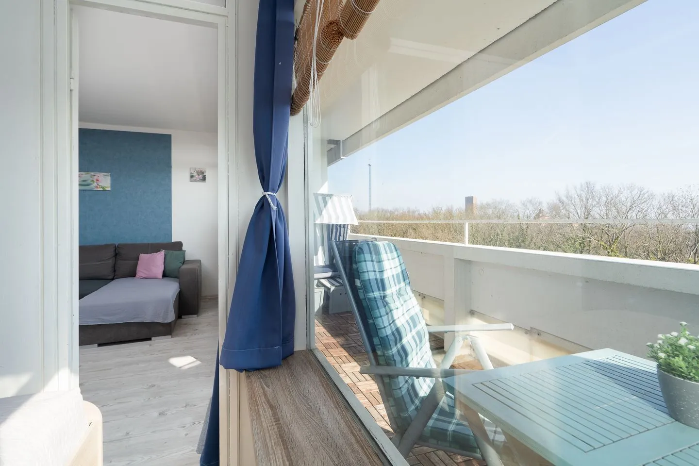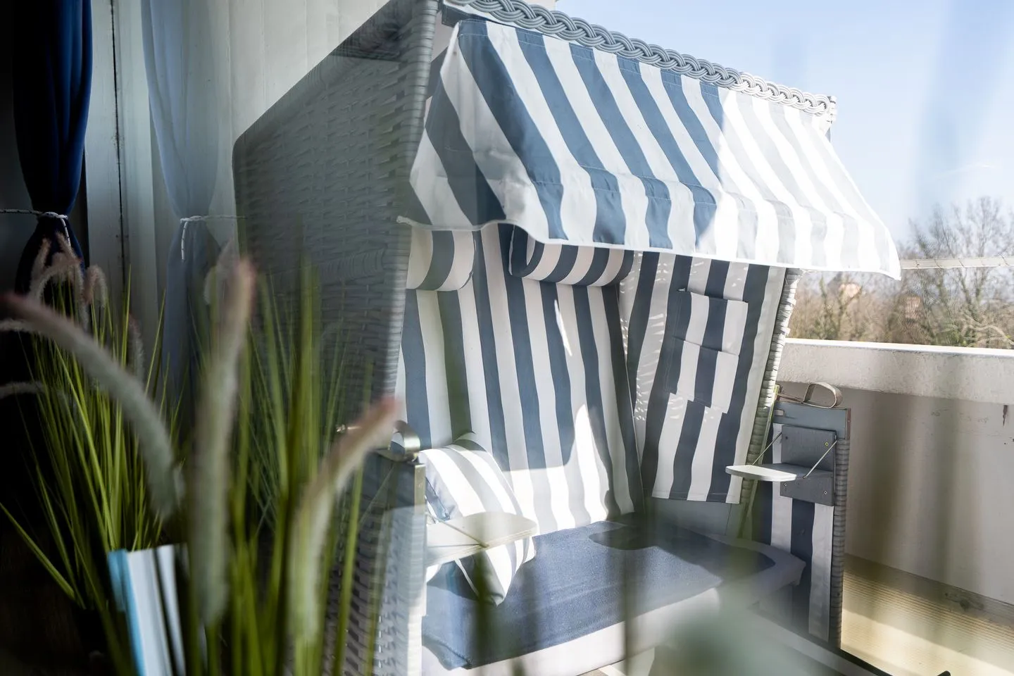 Ein besonderes Highlight dieser Ferienwohnung ist der Balkon mit Strandkorb, auf dem Sie die frische Ostseeluft und den herrlichen Meerblick genießen und entspannte Stunden verbringen können.