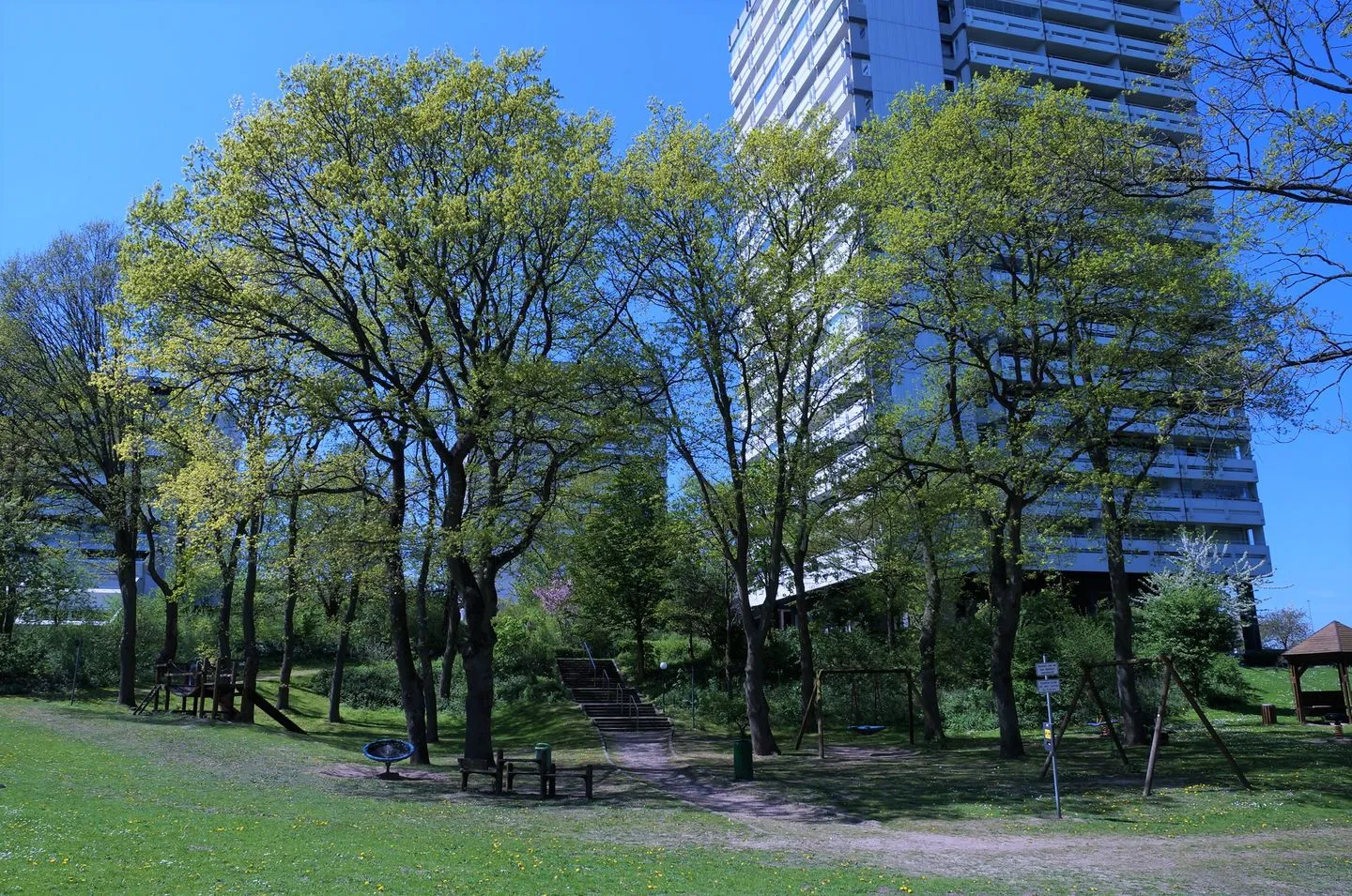 Auf dem Gelände befindet sich ein Kinderspielplatz, sowie nah angrenzend ein Schwimmbad.