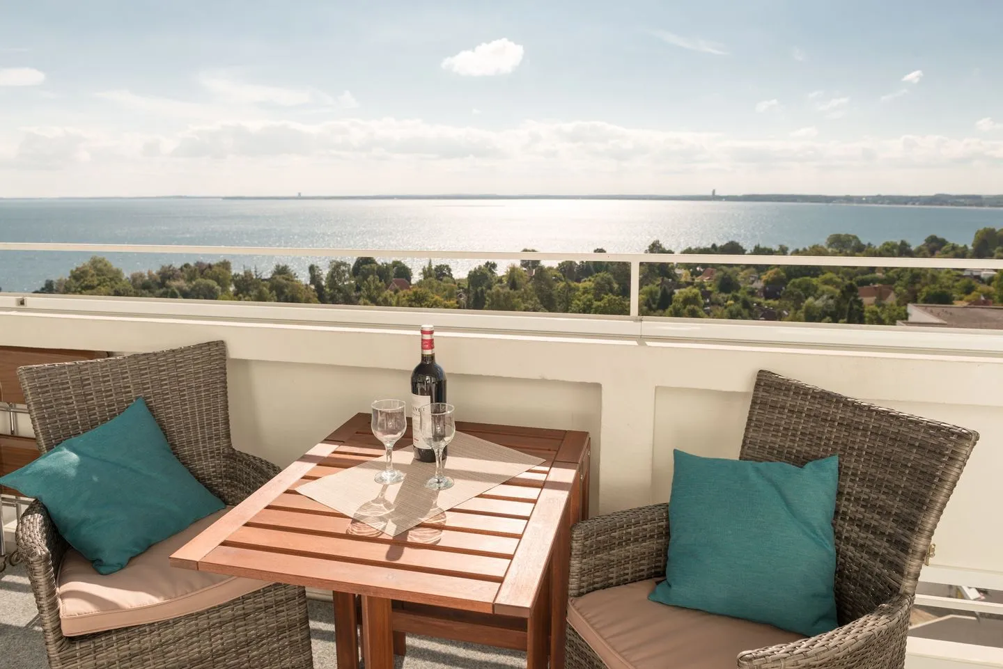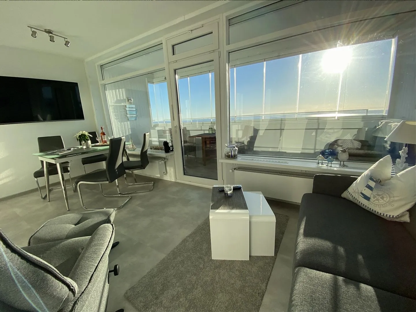 - verglaster Balkon mit ausklappbarer 2er-Lounge und Frühstückstisch mit 2 bequemen Stühlen