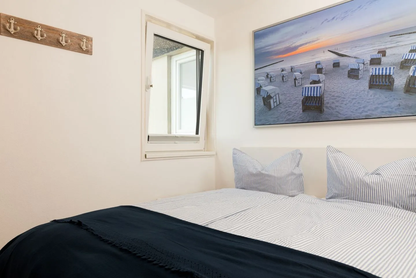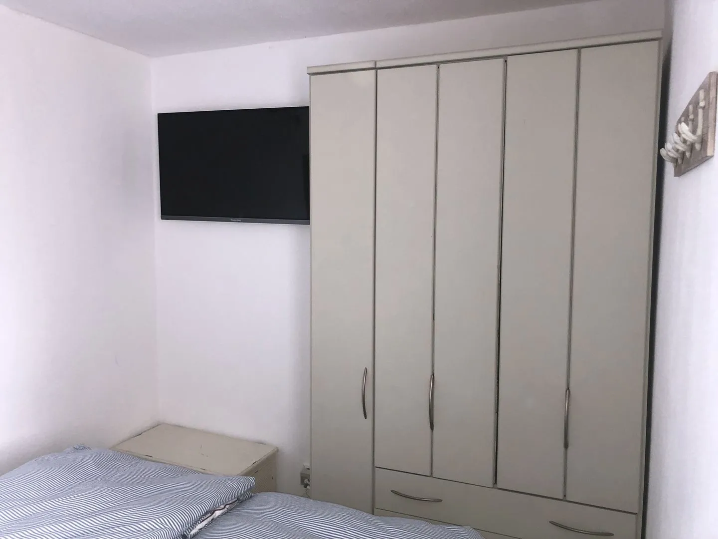 - separates Schlafzimmer mit Fenster mit Doppelbett (2 hochwertige, 80cm Matratzen), Kleiderschrank und großem Flat-TV (42 Zoll)