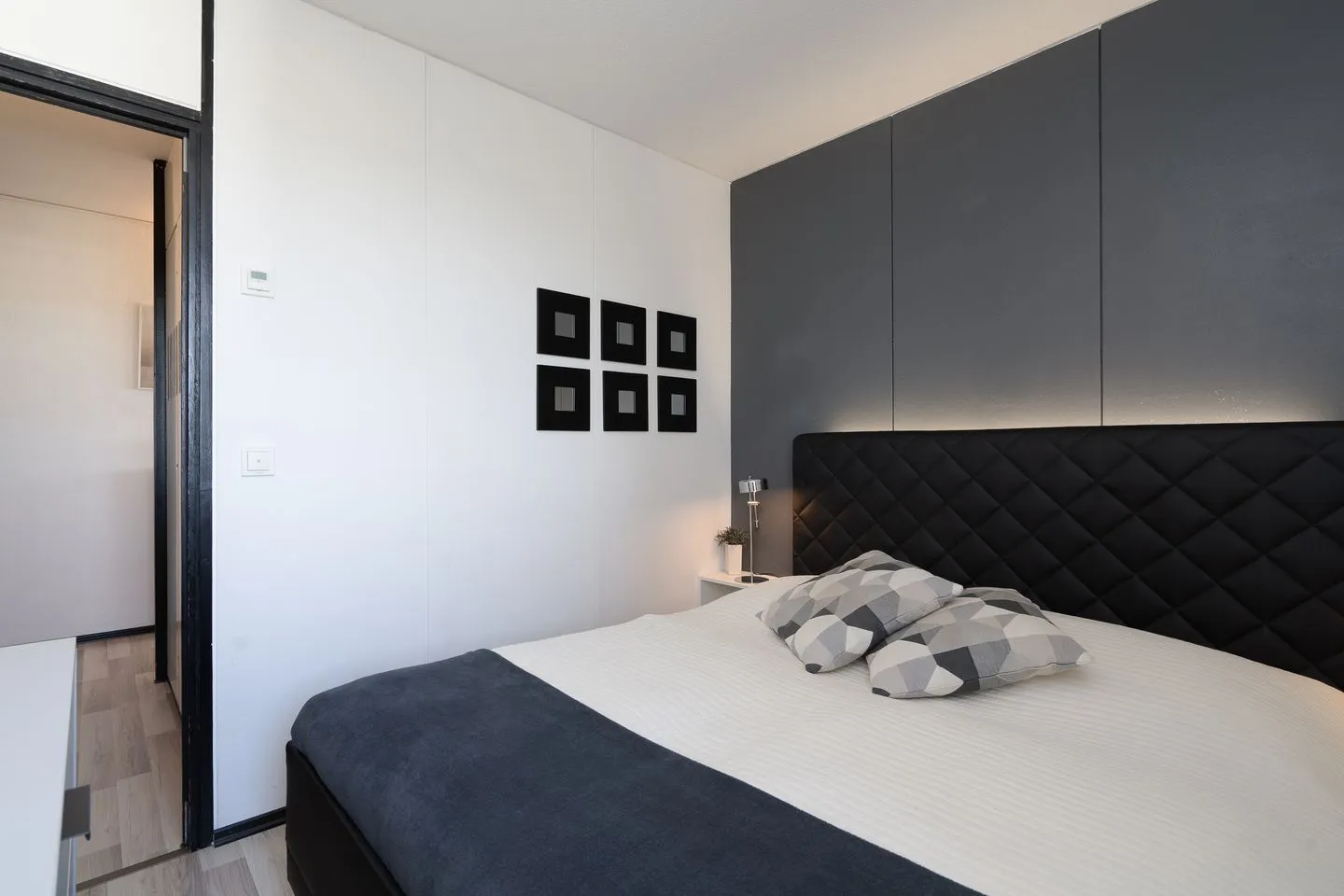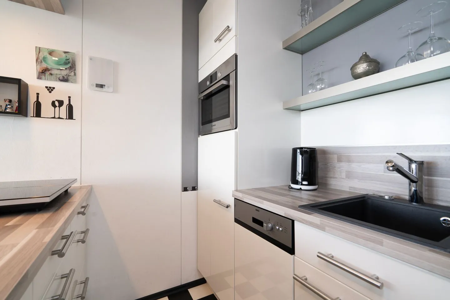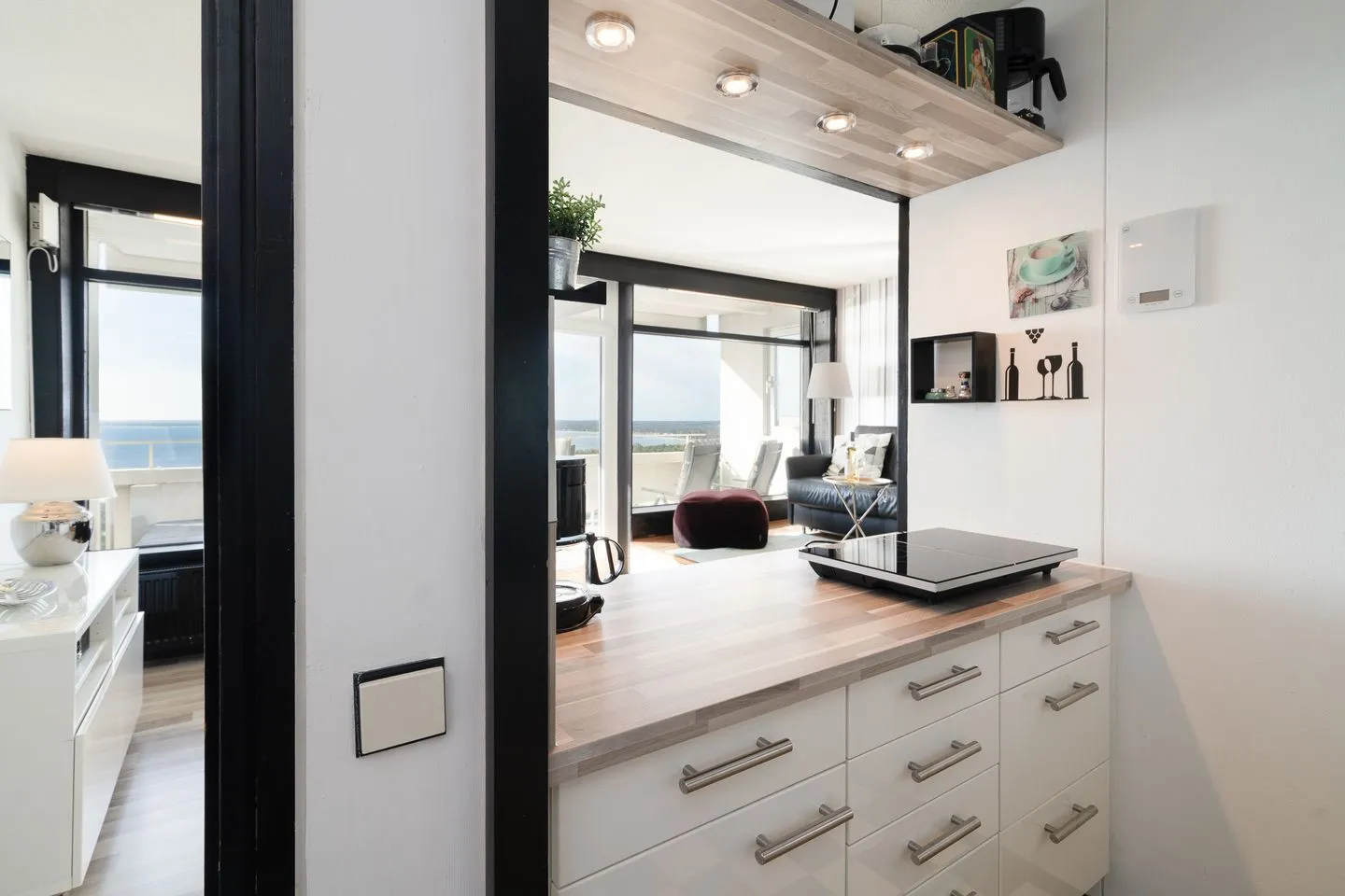 Diese moderne Ferienwohnung liegt im 14. Stock in der Panoramic-Anlage und ist für zwei Personen geeignet. Vom Balkon aus haben Sie einen wunderbaren Weitblick auf die Lübecker Bucht. Der in schwarz-weiß Tönen gehaltene Wohn- und Essbereich verfügt über eine gemütliche Sofaecke, die auf einem Podest erhöht steht. Die offene, moderne Küche ist mit Spülmaschine, Backofen und Herd ausgestattet. Im Schlafraum steht ein bequemes Doppelbett (2x 80 cm x 200 cm). Das moderne Bad verfügt über eine große Dusche und ist innenliegend. Zum Strand sind es nur wenige Gehminuten. PKW-Stellplatz inklusive.