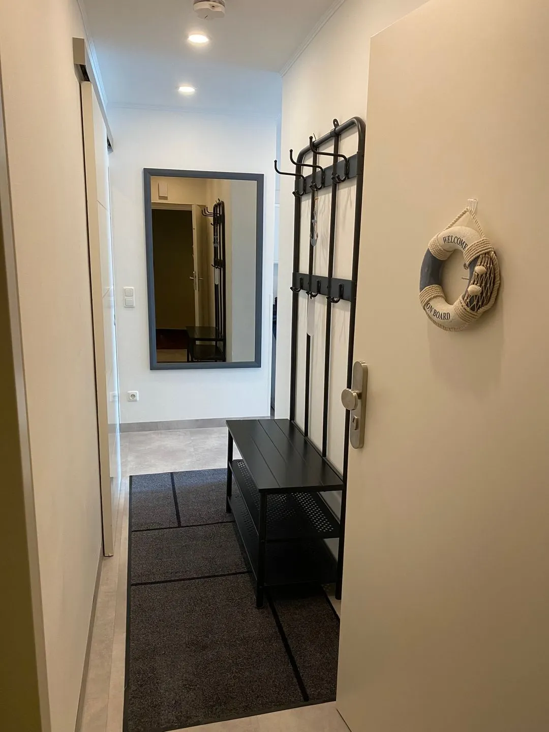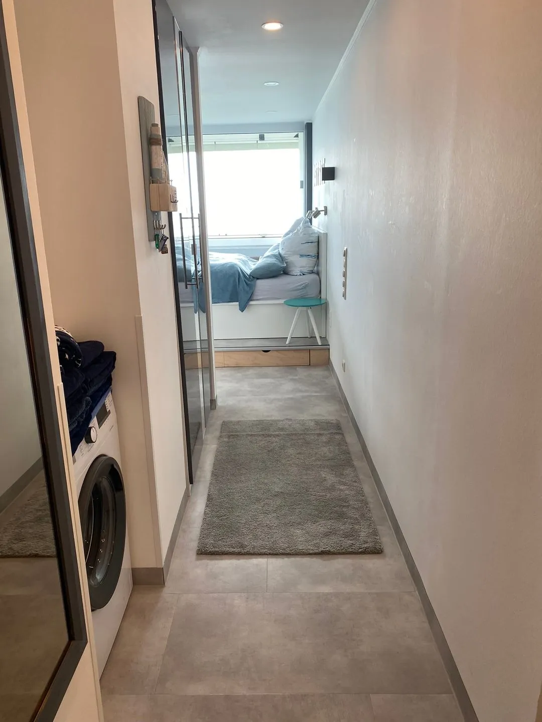 - Waschmaschine und großer Kleiderschrank im Flur