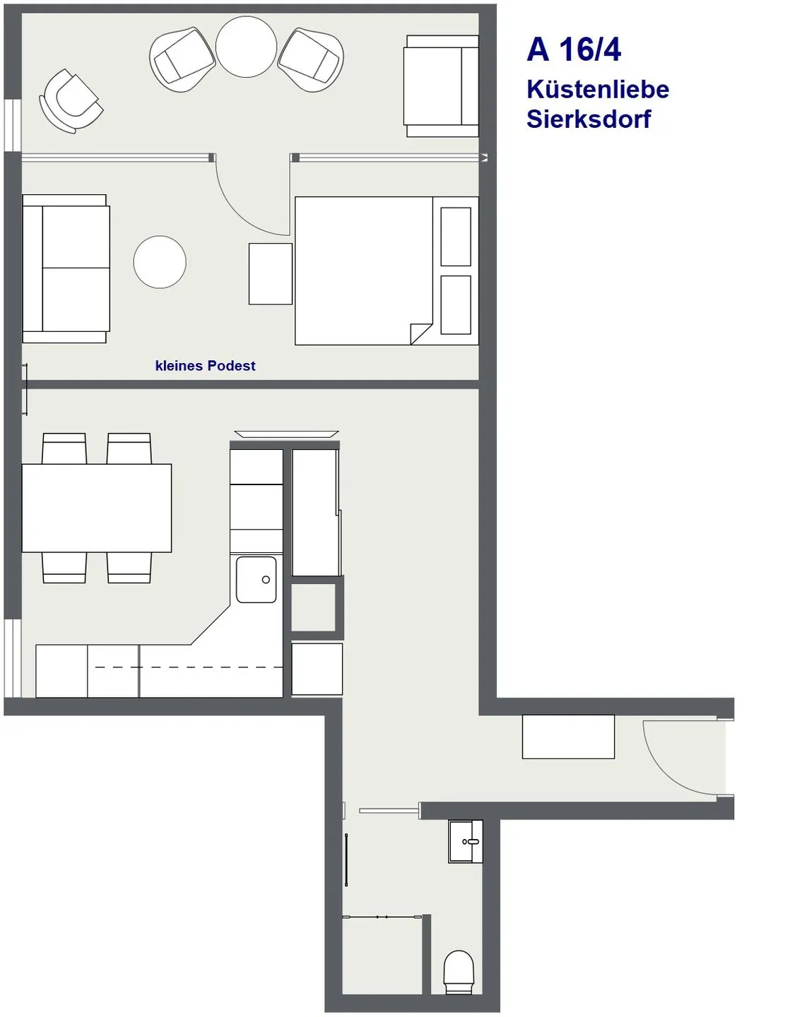 HINWEIS: Der Wohn-/Schlafbereich verfügt zwar über 4 Schlafmöglichkeiten, es gibt aber kein separates Schlafzimmer.