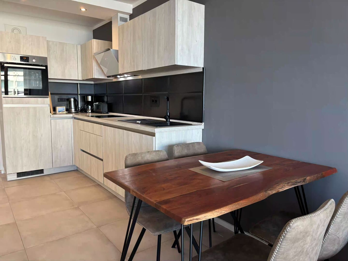 Die offene Küche ist modern ausgestattet mit Induktionsherd, Backofen und Kühlschrank. Eine Spülmaschine ist vorhanden und sorgt für zusätzlichen Komfort.