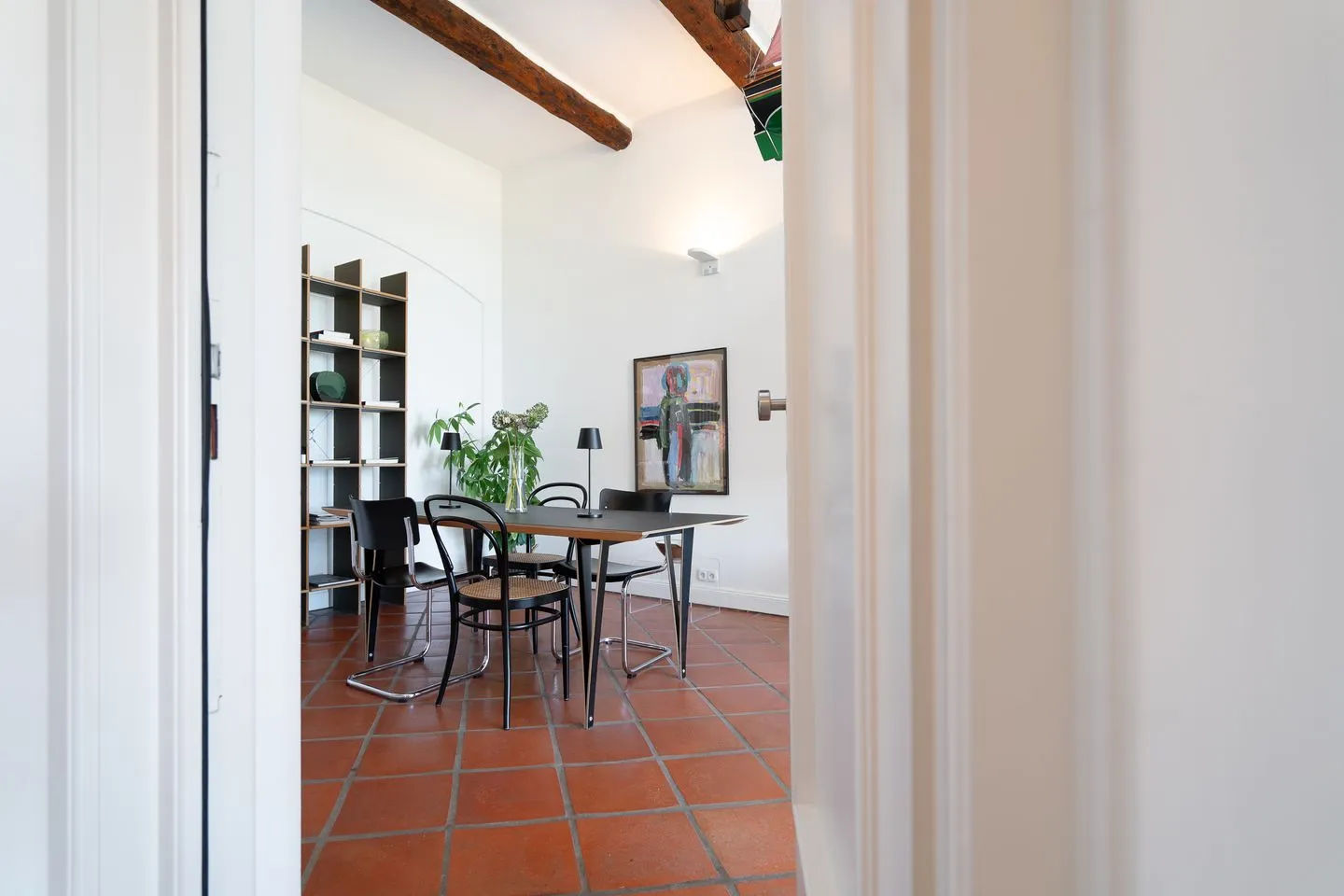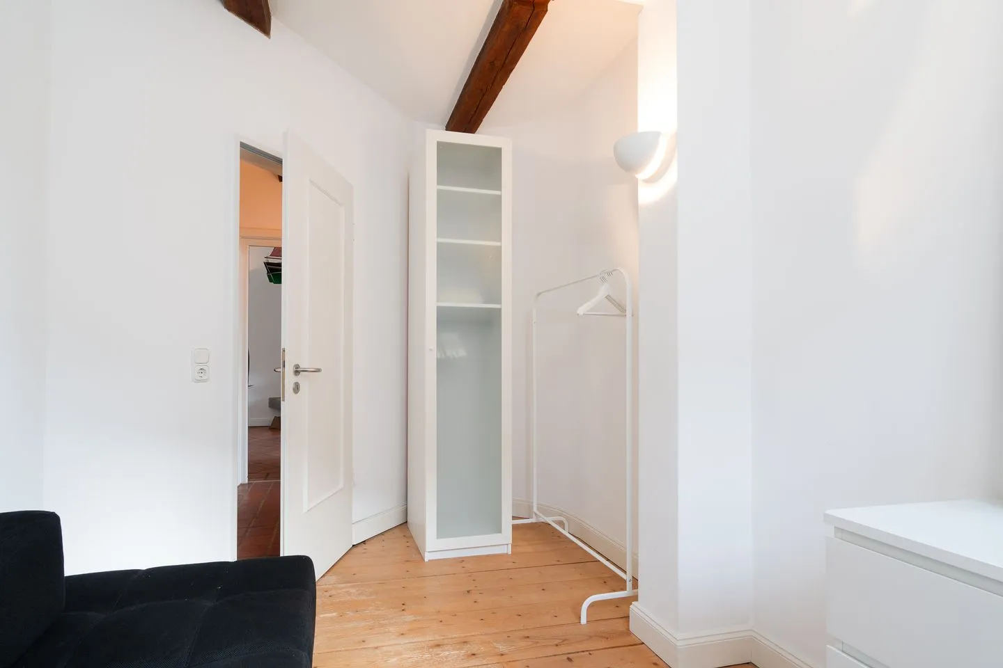 Die abgeschlossene Küche ist umfassend ausgestattet: Sie finden einen Ceranherd, Backofen, Kühlschrank mit integriertem Gefrierfach, Mikrowelle, Toaster, Wasserkocher und Kaffeemaschine sowie ausreichend Geschirr, Besteck und Küchenutensilien. Zum Kochen und Beisammensein ist die Küche ideal eingerichtet. Staubsauger, Abfalleimer und weitere nützliche Haushaltsgeräte stehen bereit.